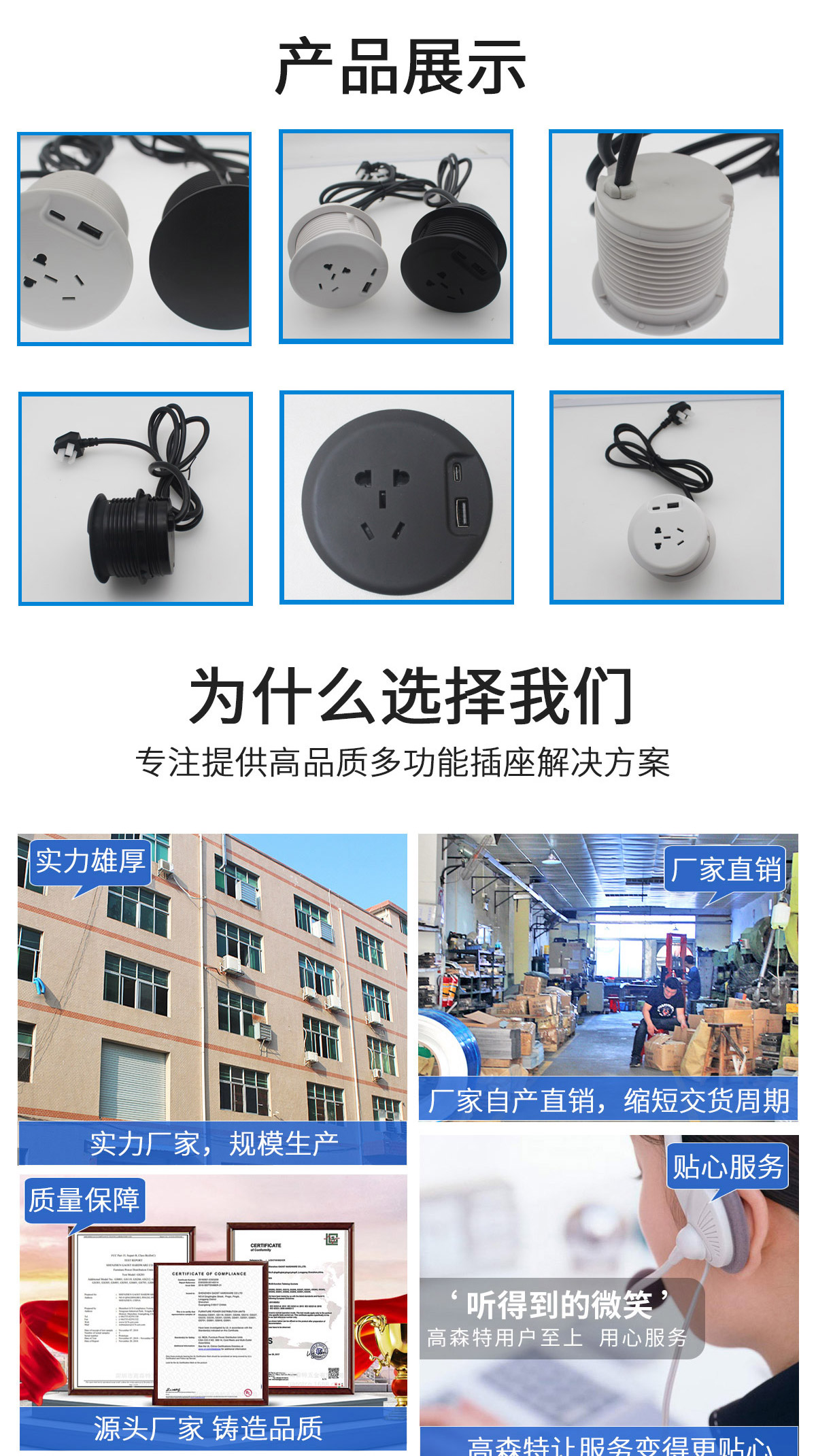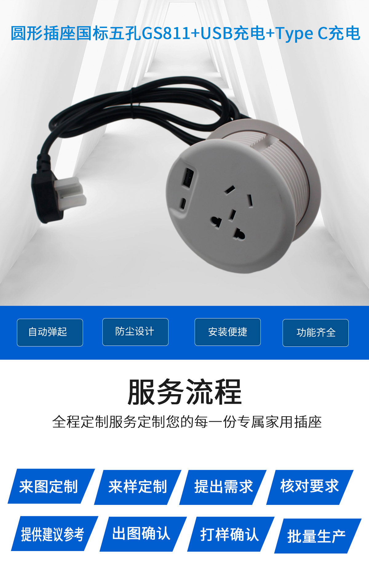 圆形插座国标五孔GS811+USB充电+Type C充电