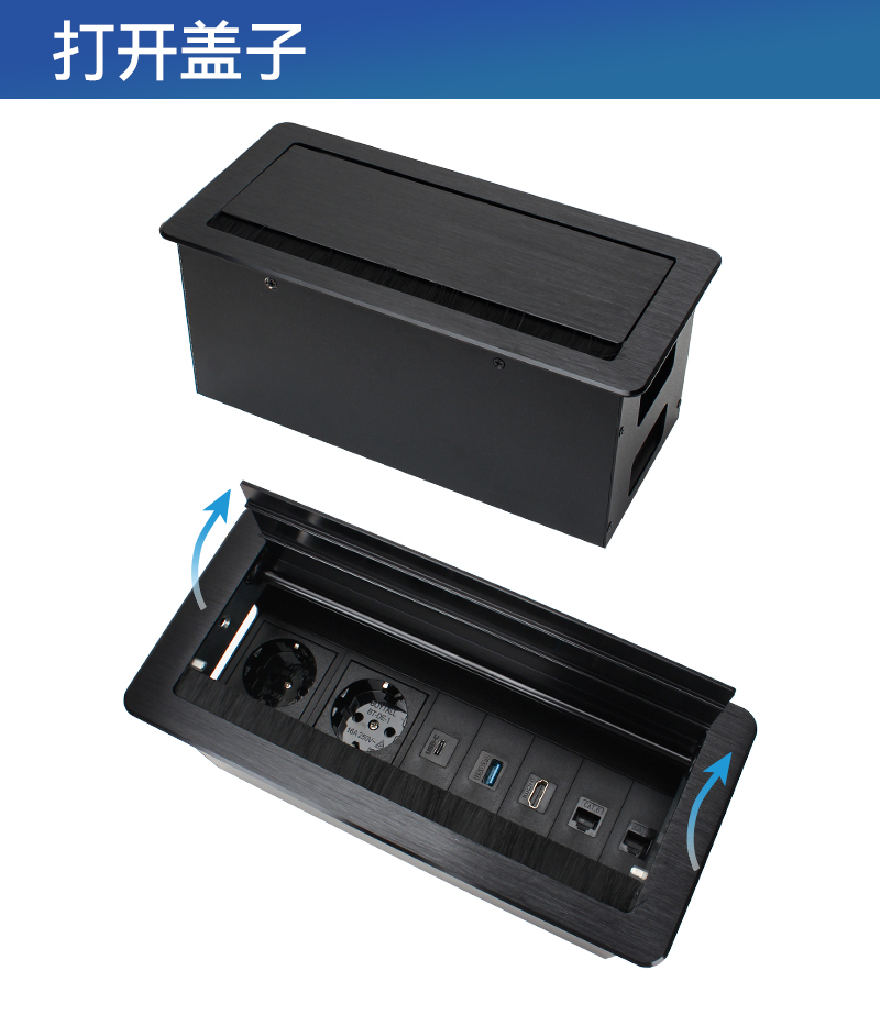 GS809欧标2,1C,USB数据,HDMI,网2,黑色-翻盖式多功能插座