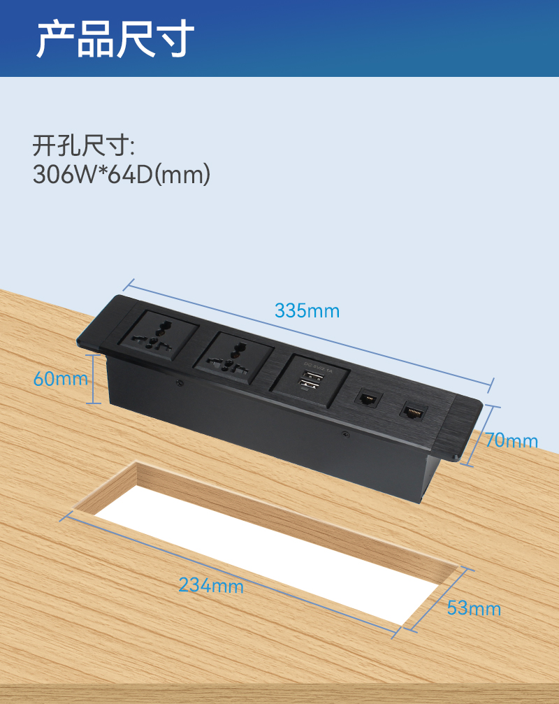 GS900-266新国标2,VGA,音,USB数据,网,电话,HDMI,银色-快开式气撑桌面插座