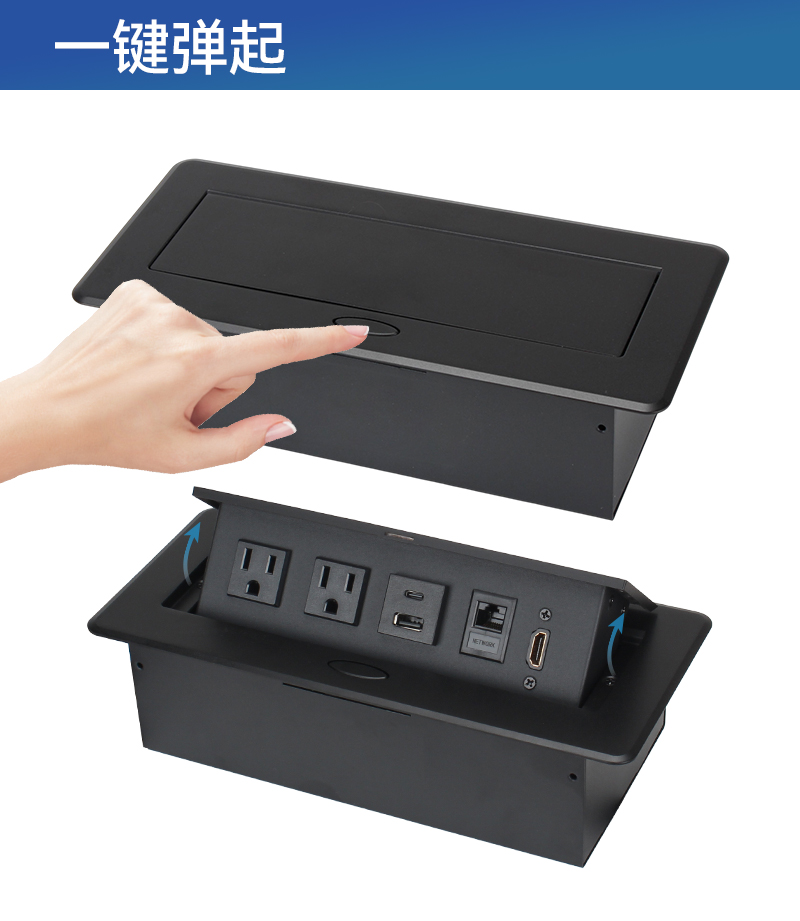 GS201美标2,1A1C,网,HDMI,黑色-弹起式嵌入插座