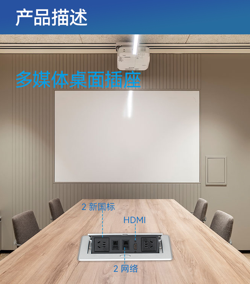 GS201新国标2,网2,HDMI,银色-弹起式桌面插座