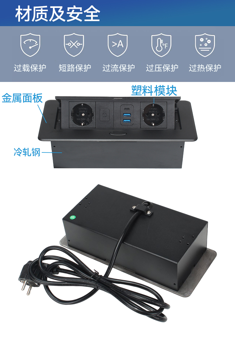 GS206英标,2A,黑色-弹起式桌面插座