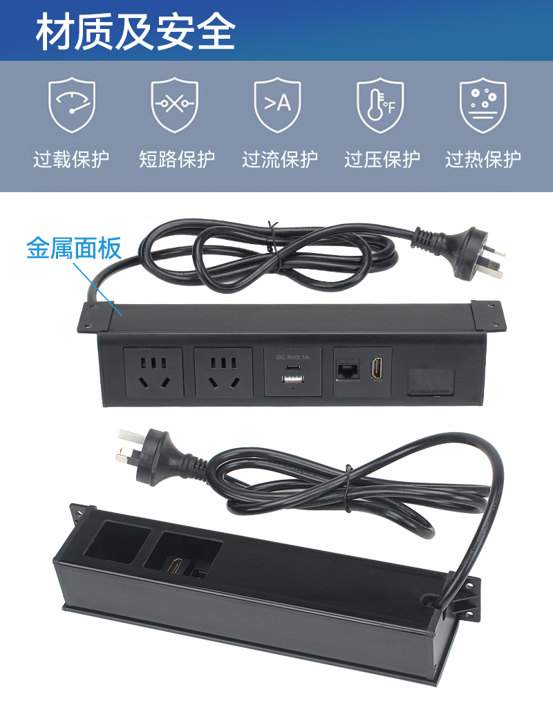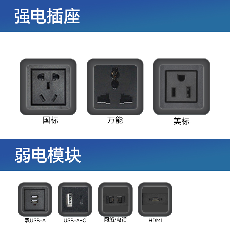 GS255-D新国标2,1A1C,网,HDMI,过线孔,黑色-吊装插座