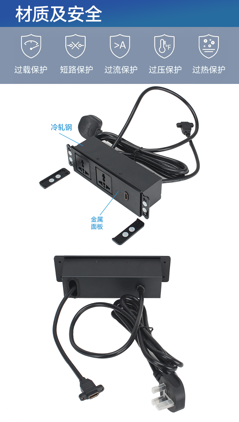 GS900新国标,网4,黑色,快开式气撑桌面插座