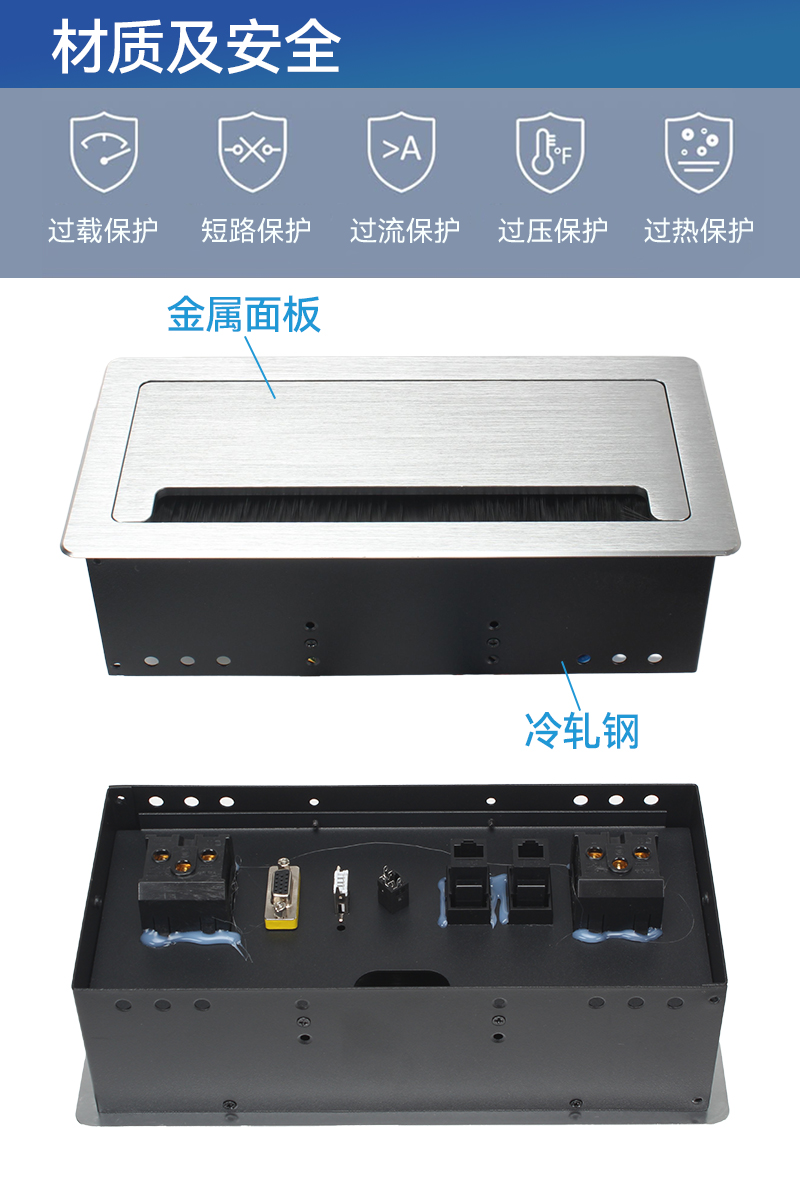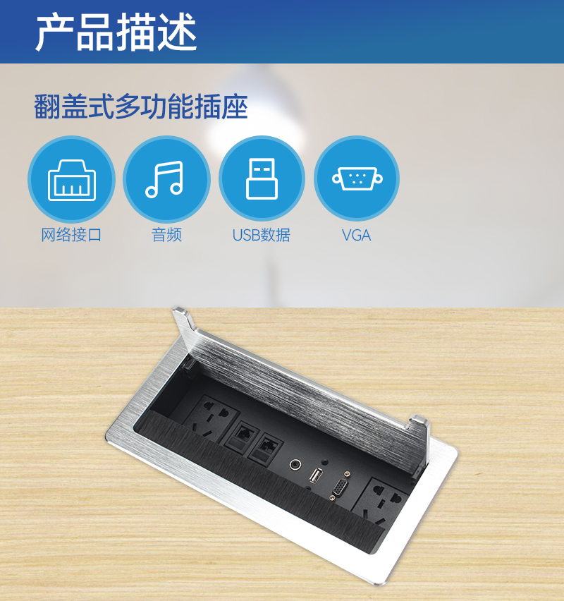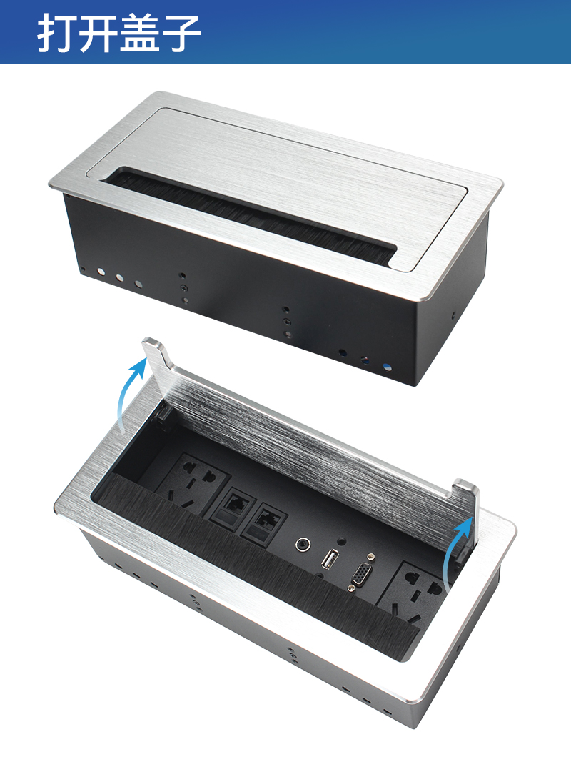 GS301新国标2,网2,音,数据,VGA,银色,会议桌翻盖多功能插座带毛刷