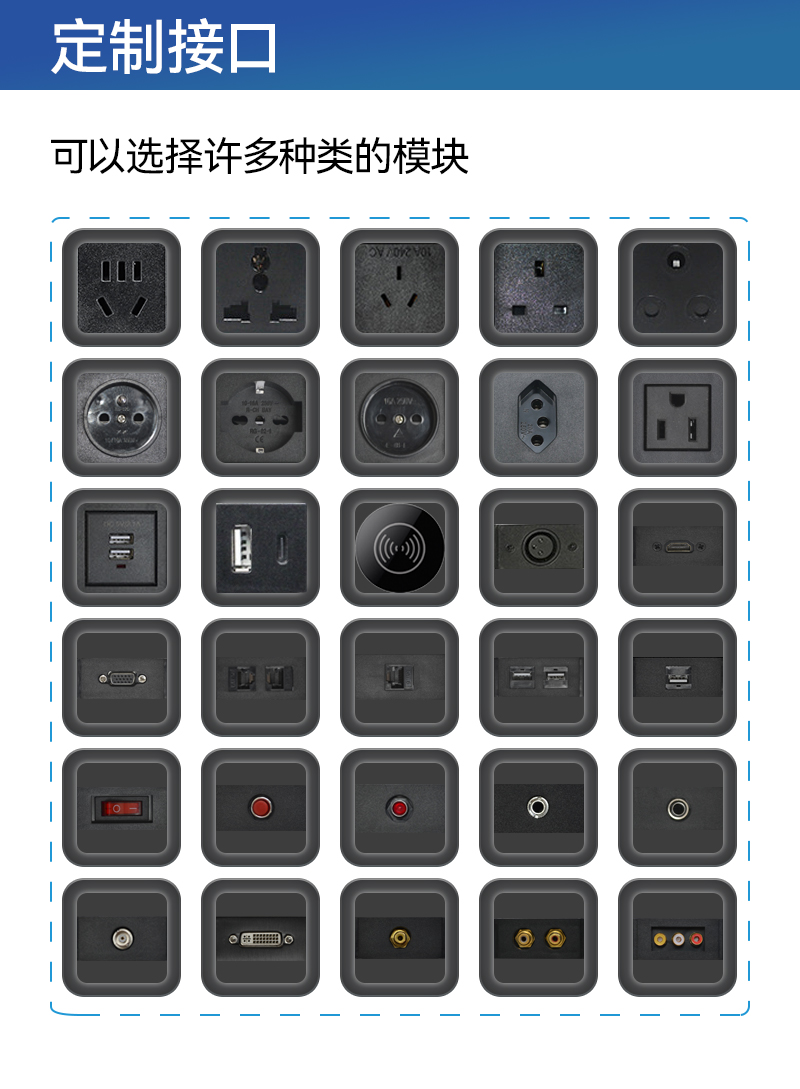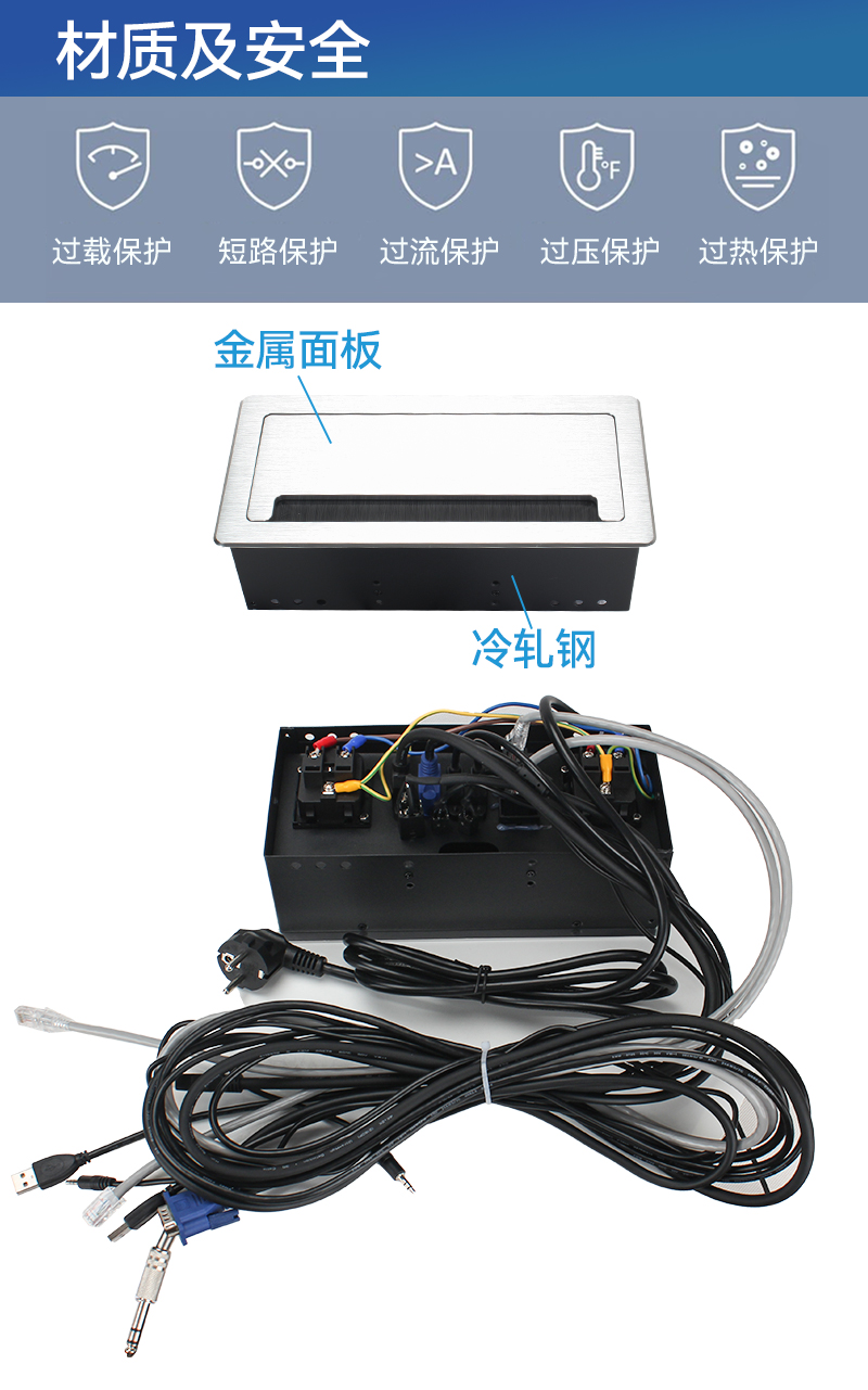 GS301新国标2,网2,音,数据,VGA,银色,会议桌翻盖多功能插座带毛刷