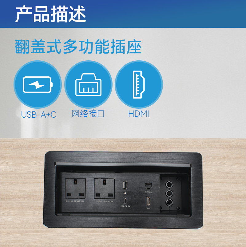 GS700英标2,A+C,网络,HDMI,过线孔,多功能滑盖插座(盖子下滑)