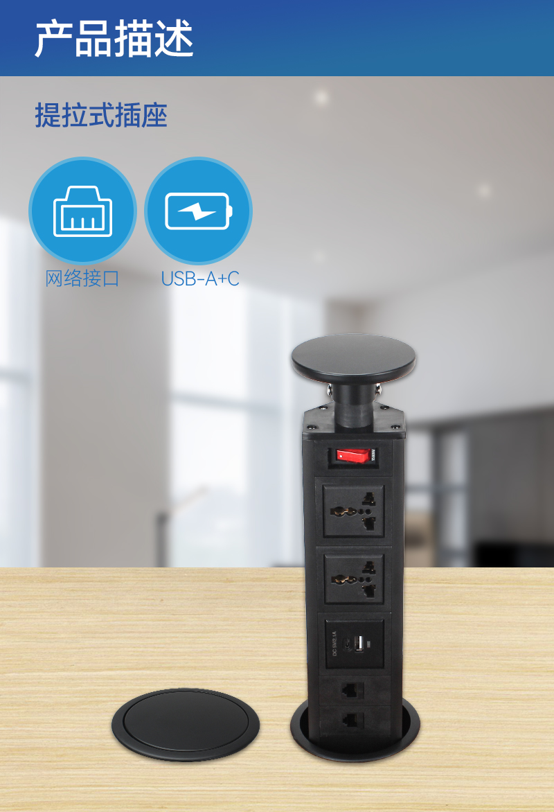 GS235-90提拉插座,万能2,A+C,网2,开关,黑色,提拉插座