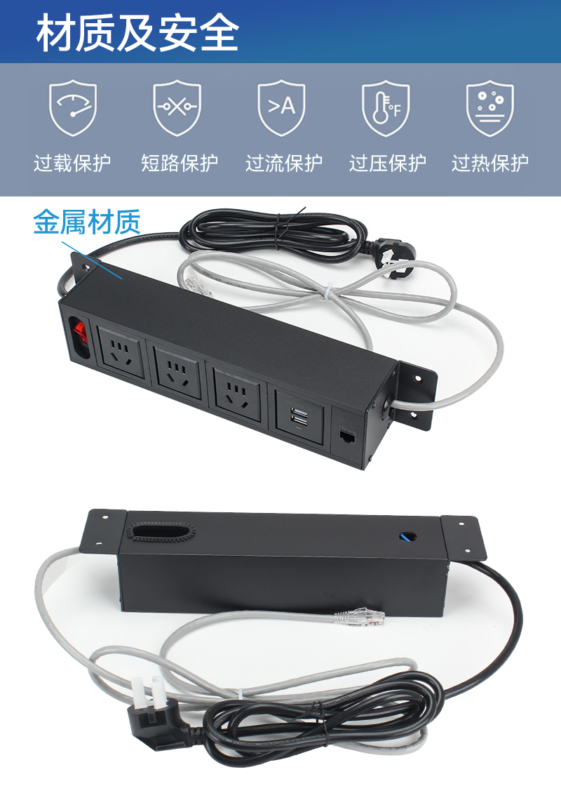 GS301英标2,2A,网,银色-会议桌翻盖多功能插座带毛刷