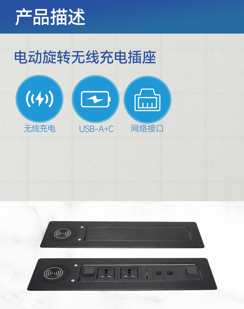 GS001-QI万能2,1A1C,网2,无线,黑色,电动旋转无线插座