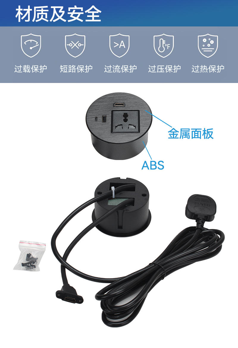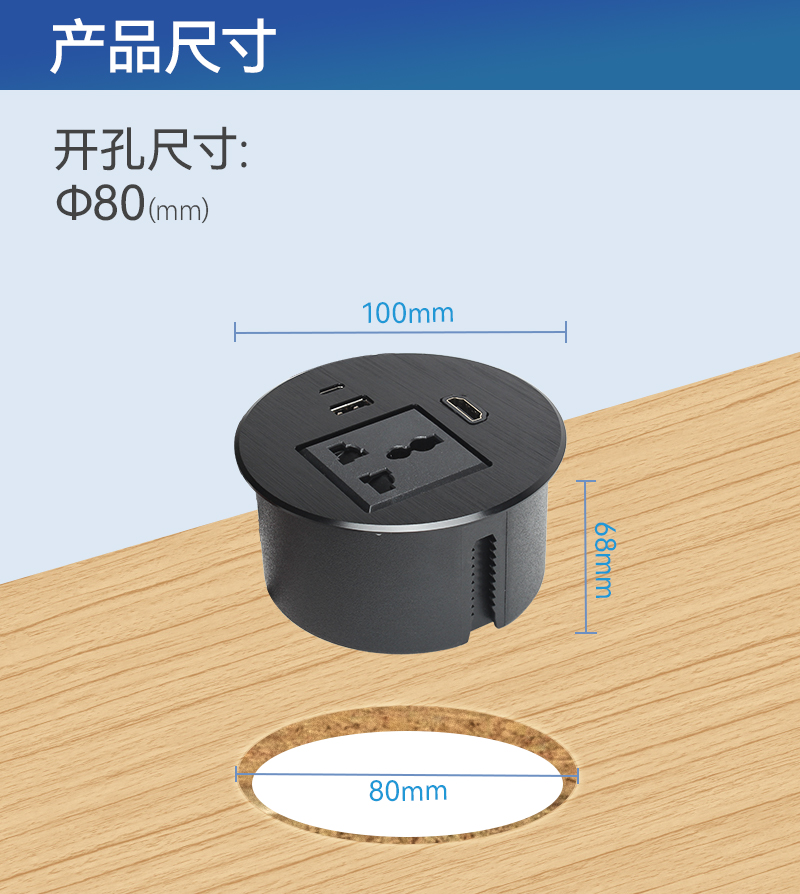 GS801L万能,A+C,HDMI,黑色-铝合金插座