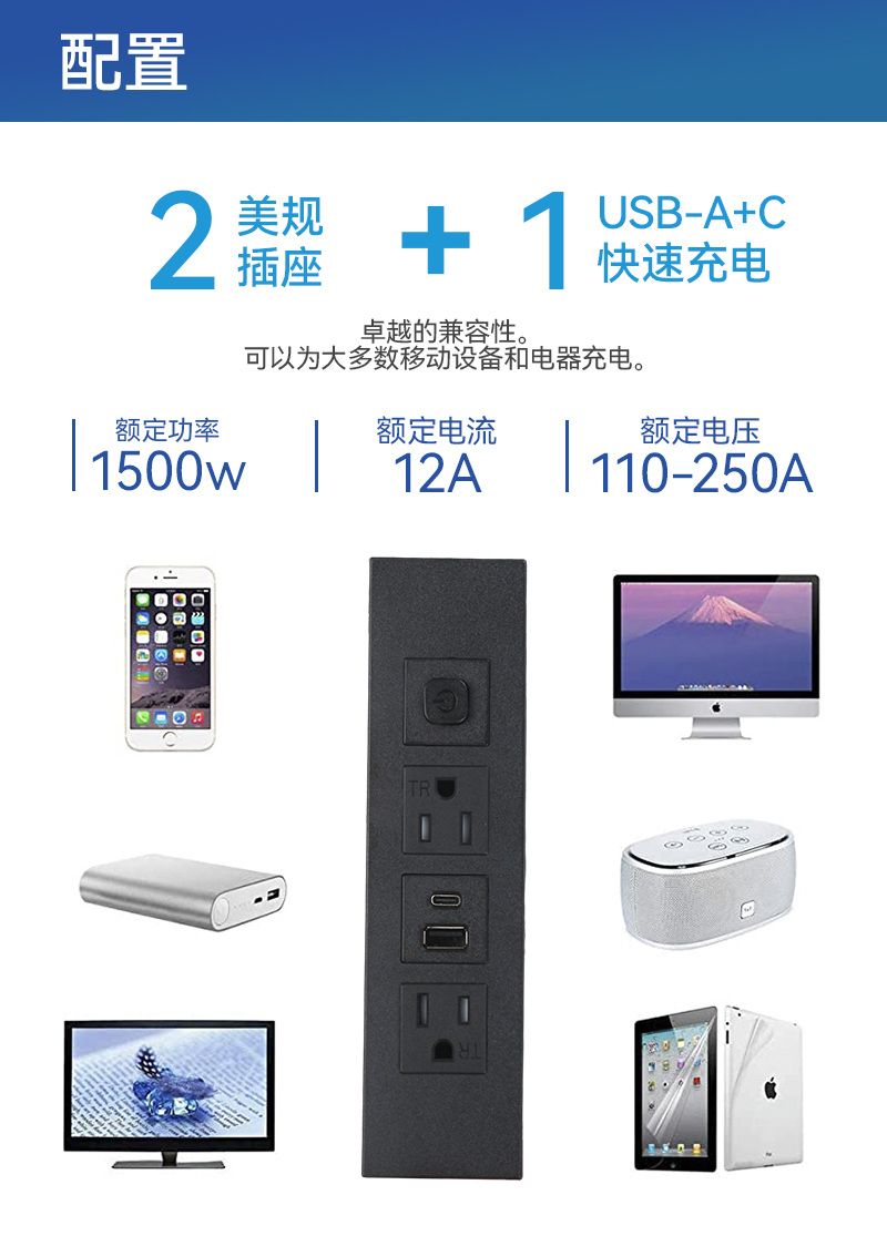 GS233美标2,A+C,开关,黑色,嵌入式插座