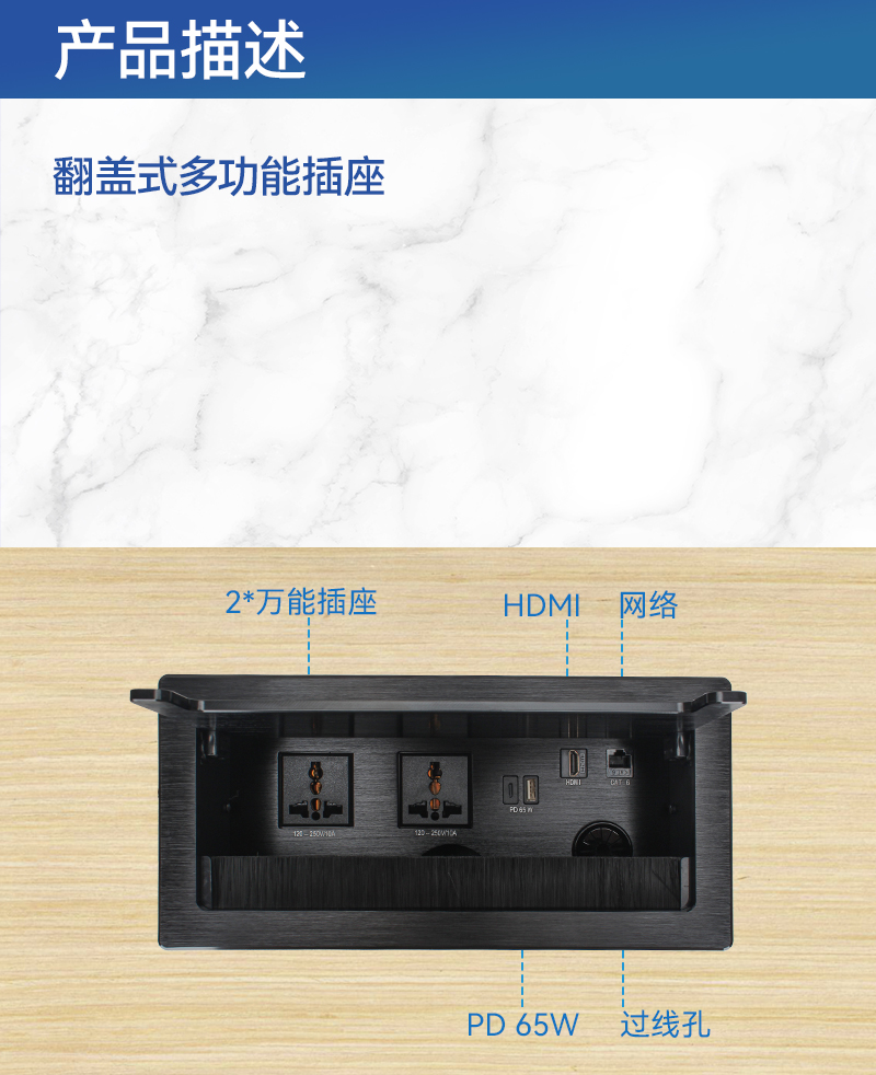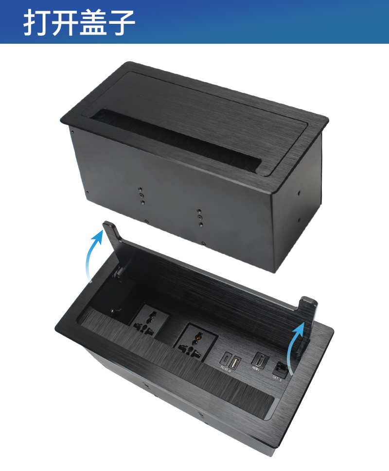 GS301万能2,PD,HDMI,网络,过线孔,黑色-翻盖式多功能插座