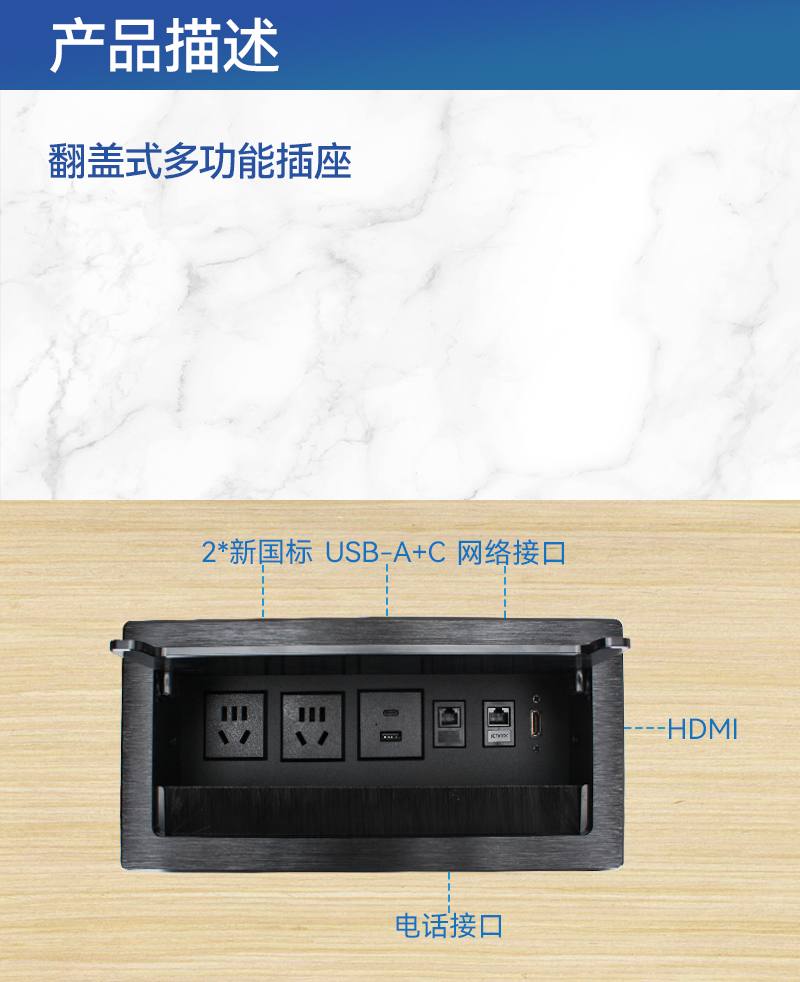 GS301新国标2,1A1C,电话,网,HDMI,黑色-翻盖式多功能插座