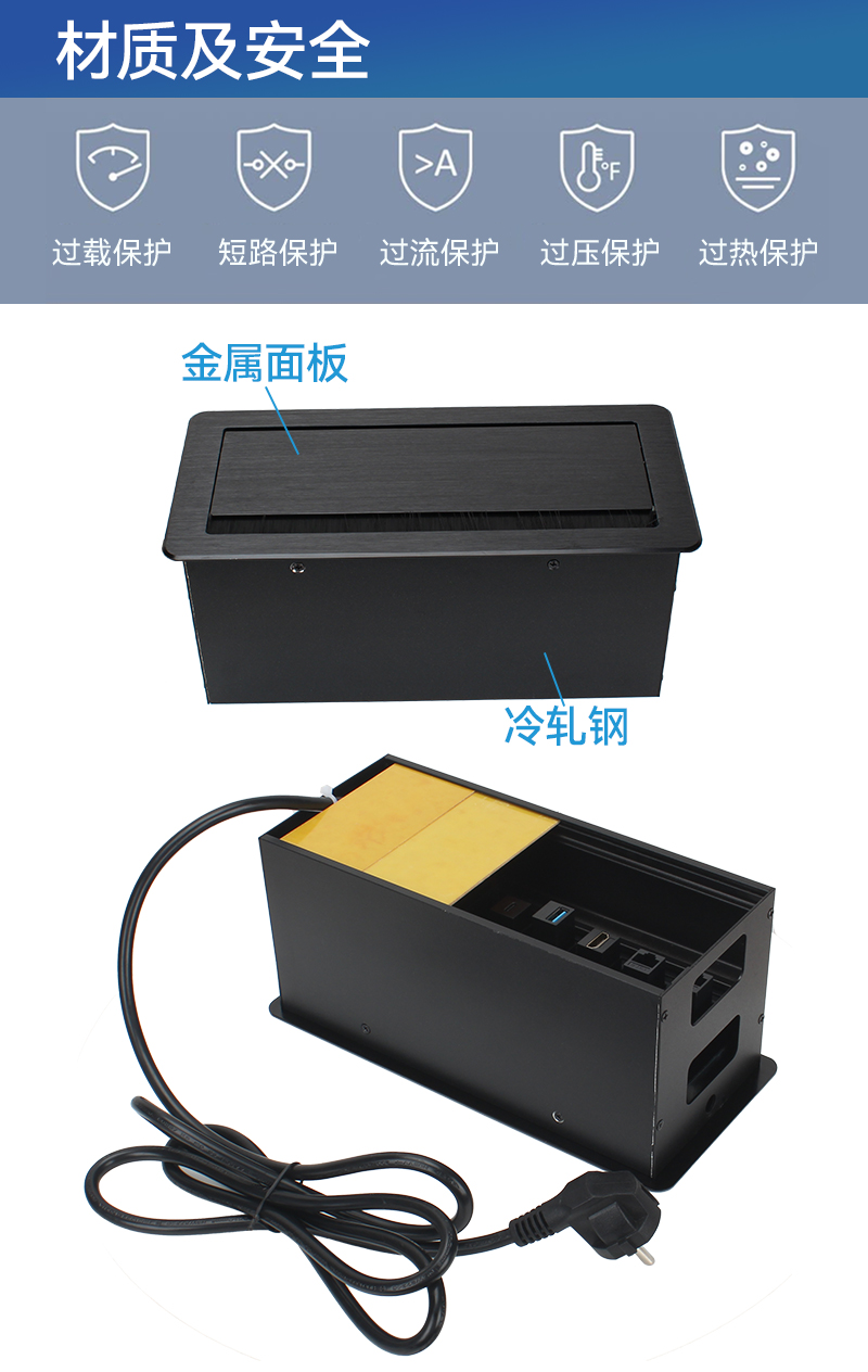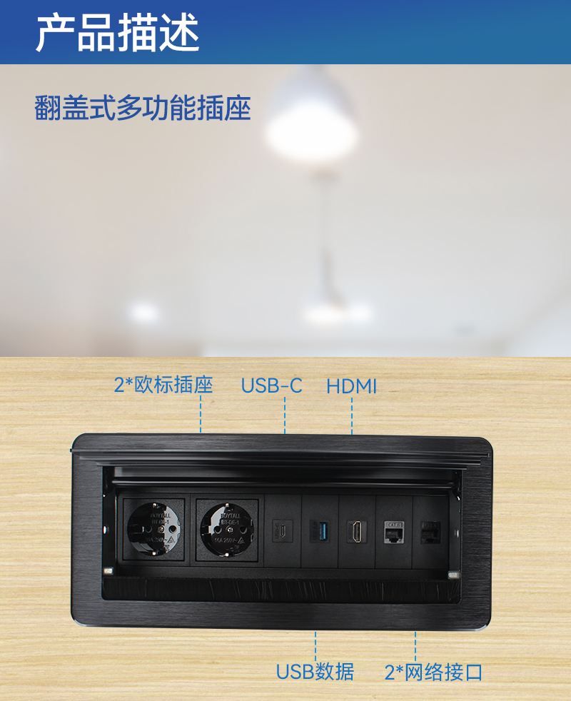 GS809欧标2,1C,USB数据,HDMI,网2,黑色-翻盖式多功能插座