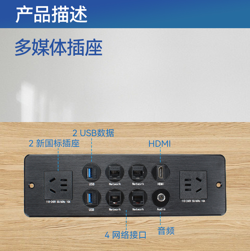 GS201新国标2,网2,HDMI,银色-弹起式桌面插座