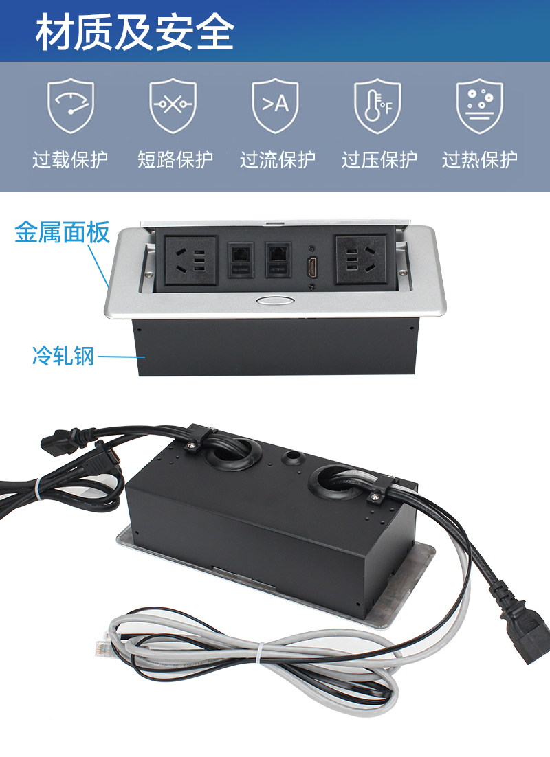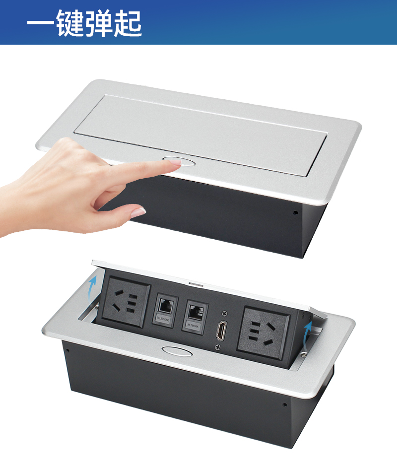 GS201新国标2,网2,HDMI,银色-弹起式桌面插座
