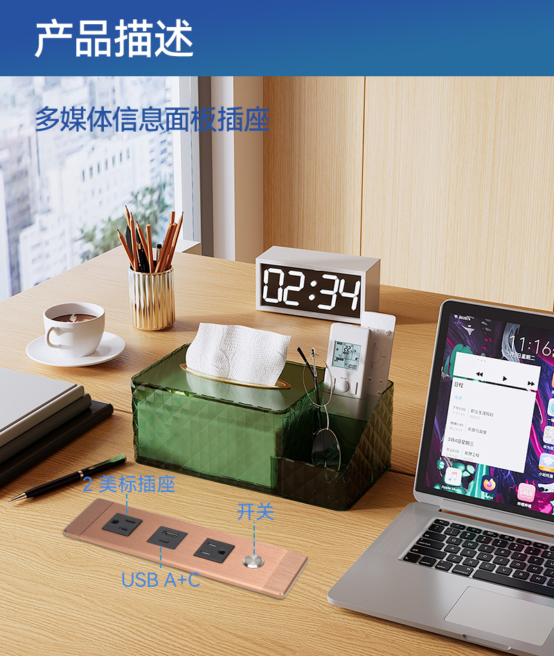 GS201新国标2,网2,HDMI,银色-弹起式桌面插座