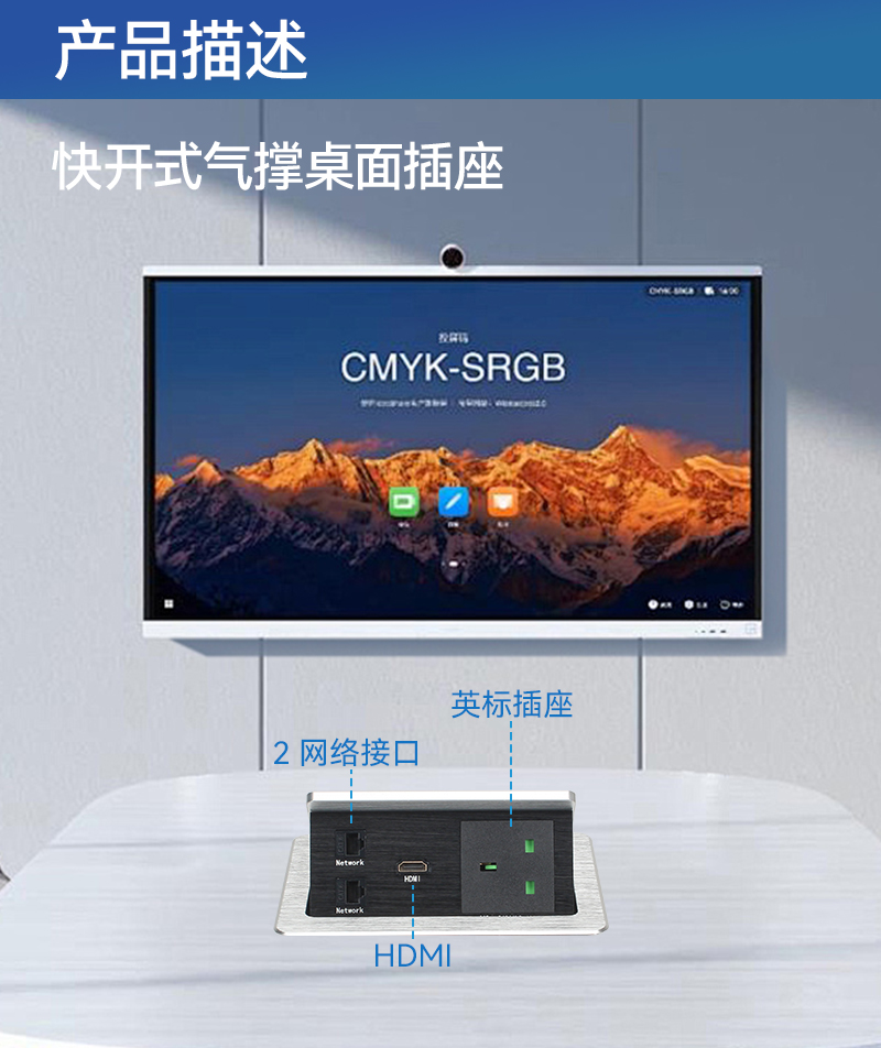 GS900-175英标,网2,HDMI-快开式气撑桌面插座