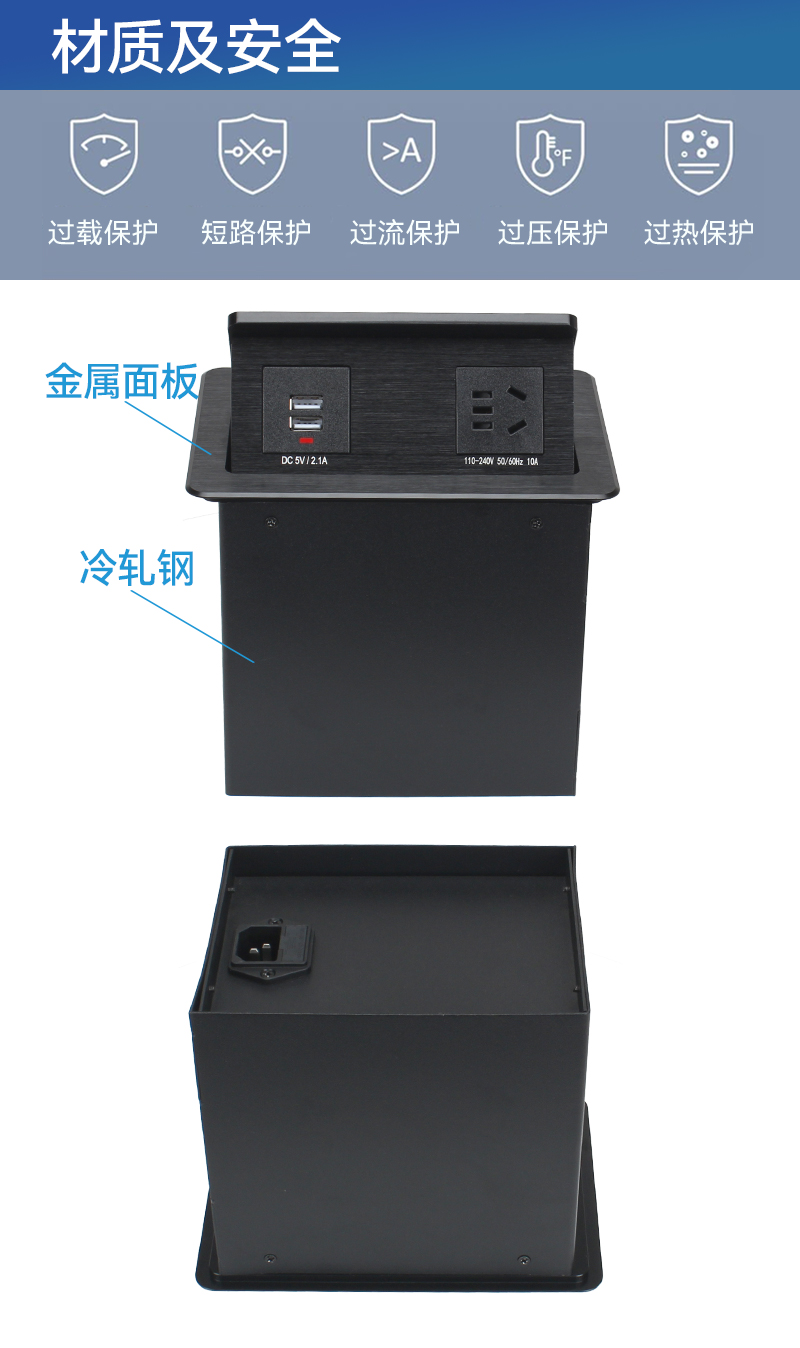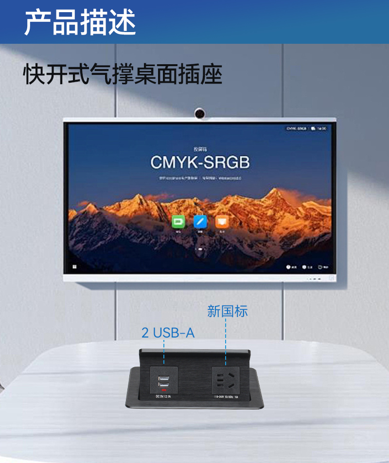 GS900-175新国标,2A,黑色-快开式气撑桌面插座