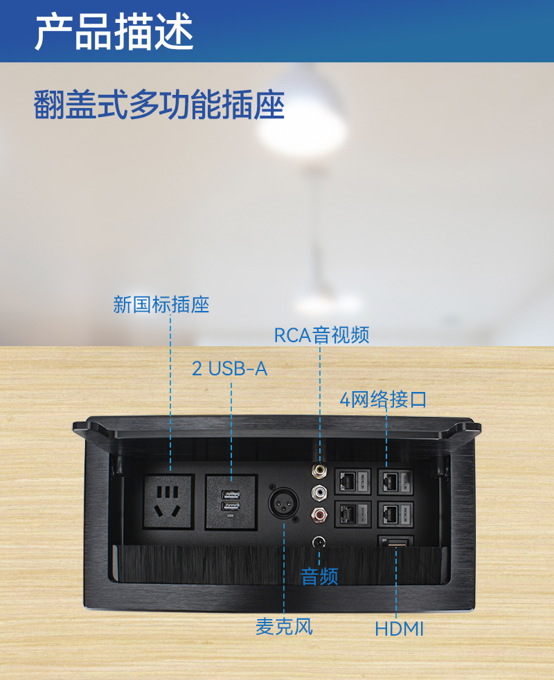 GS301新国标,2A,麦,3.5音频,RCA音频,网4,HDMI,黑色-翻盖式多功能插座
