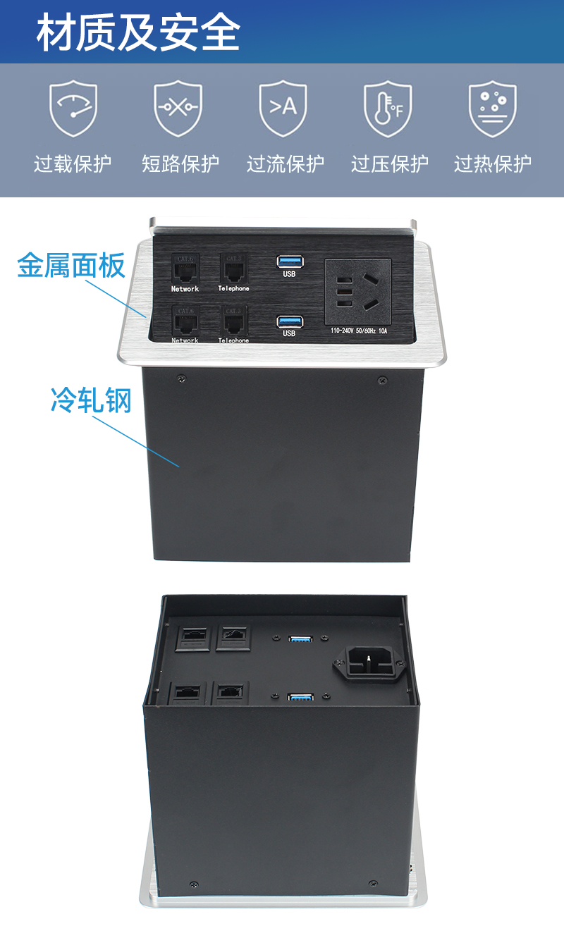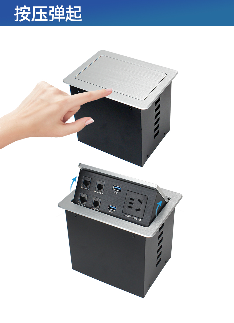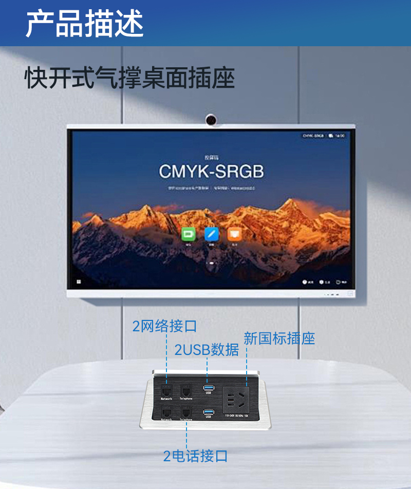 GS900新国标,网2,电话2,数据2,银色-快开式气撑桌面插座