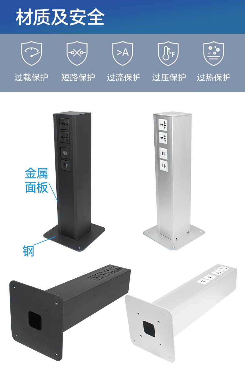 GS222-T万能4,8A,黑银色-立柱双面插座