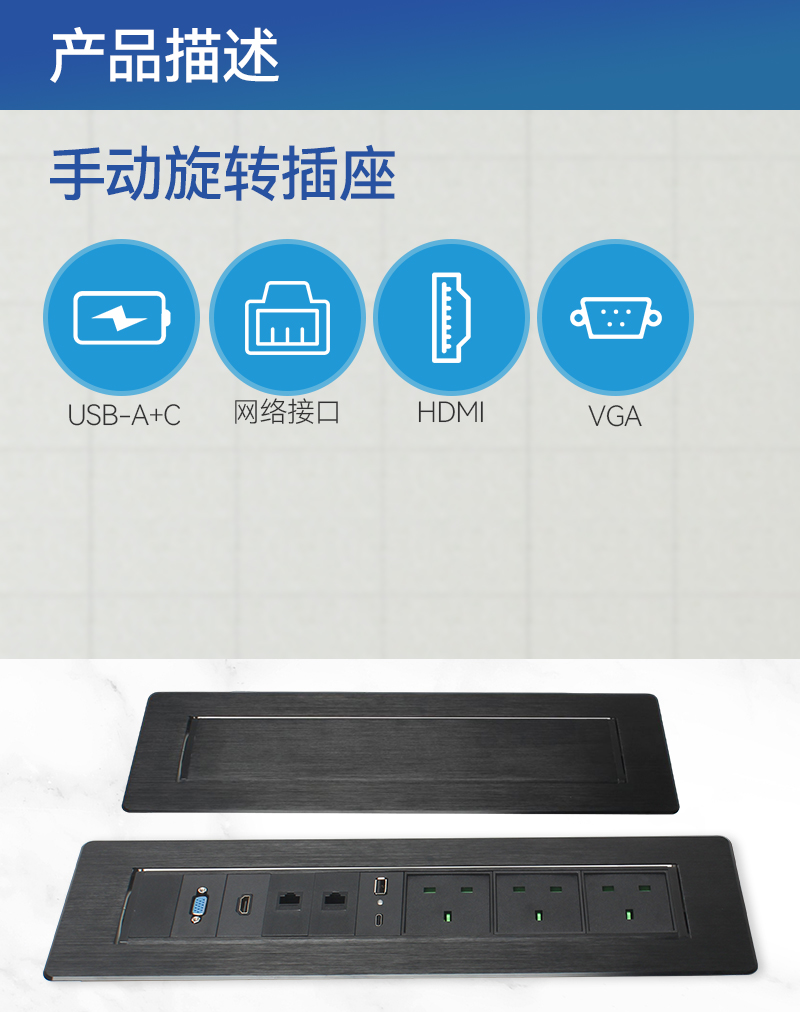 GS255-D新国标2,1A1C,网,HDMI,过线孔,黑色-吊装插座