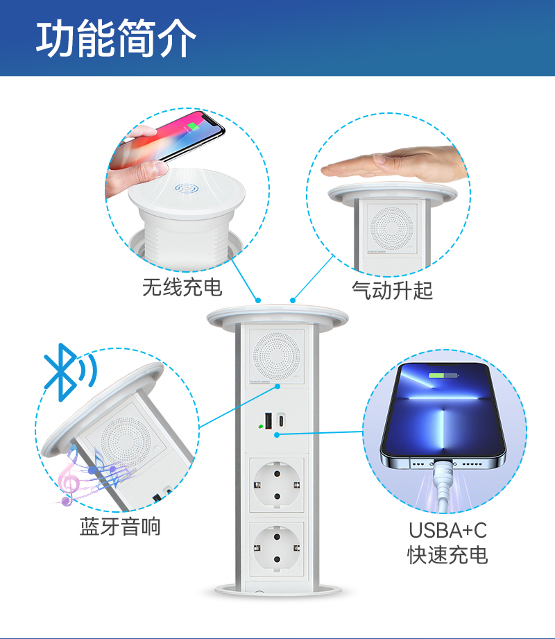 GS238气杆升降-欧标2有LOGO,A+C,音响,无线蓝标,银色-