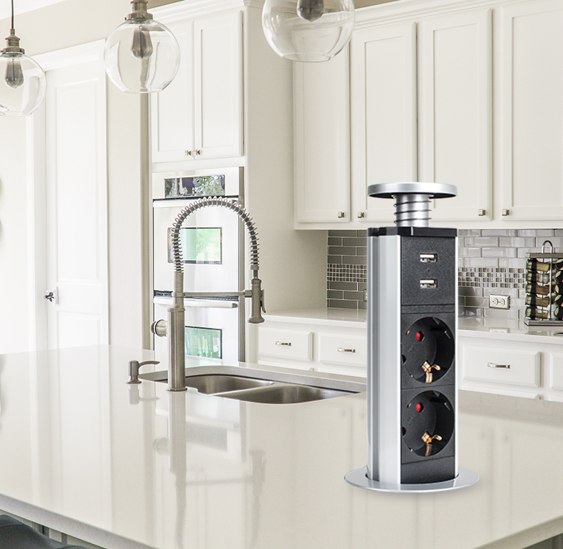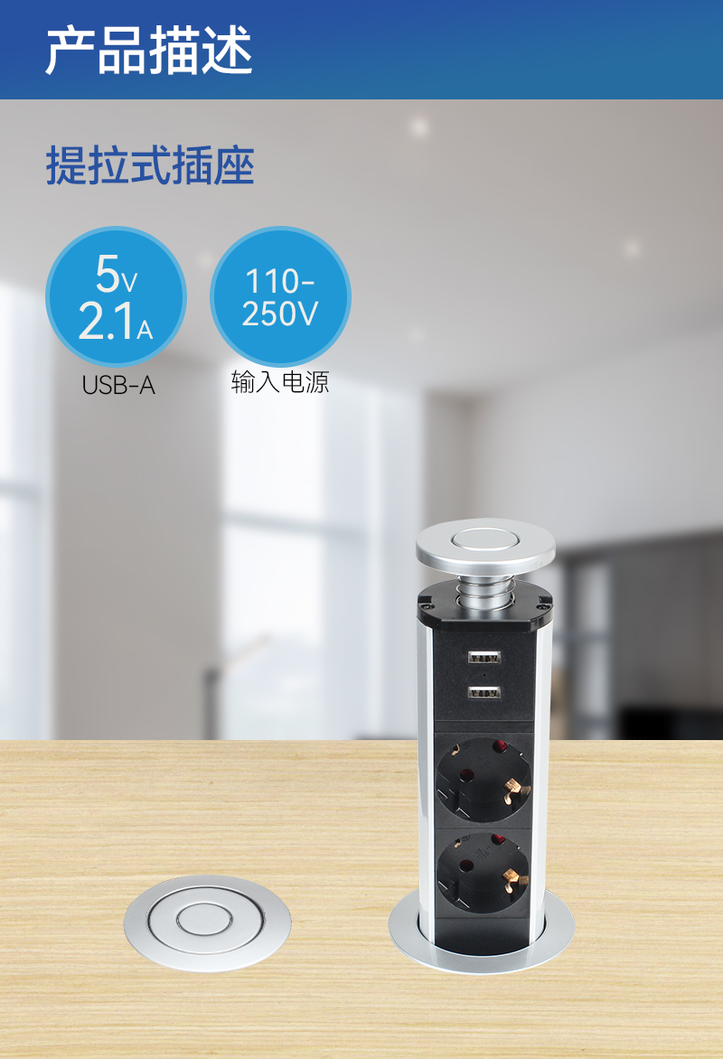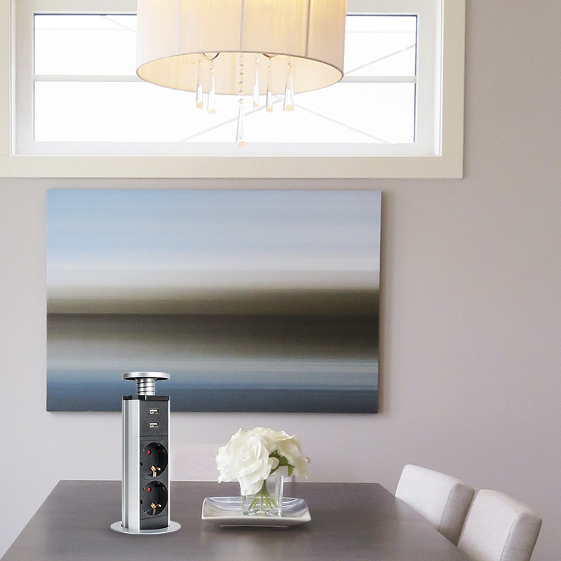 提拉插座,英标3,双USB,银色