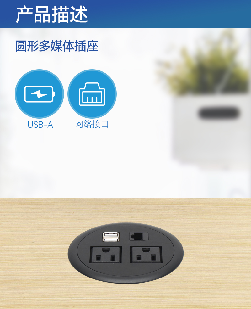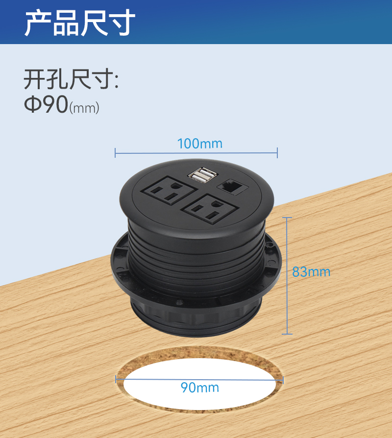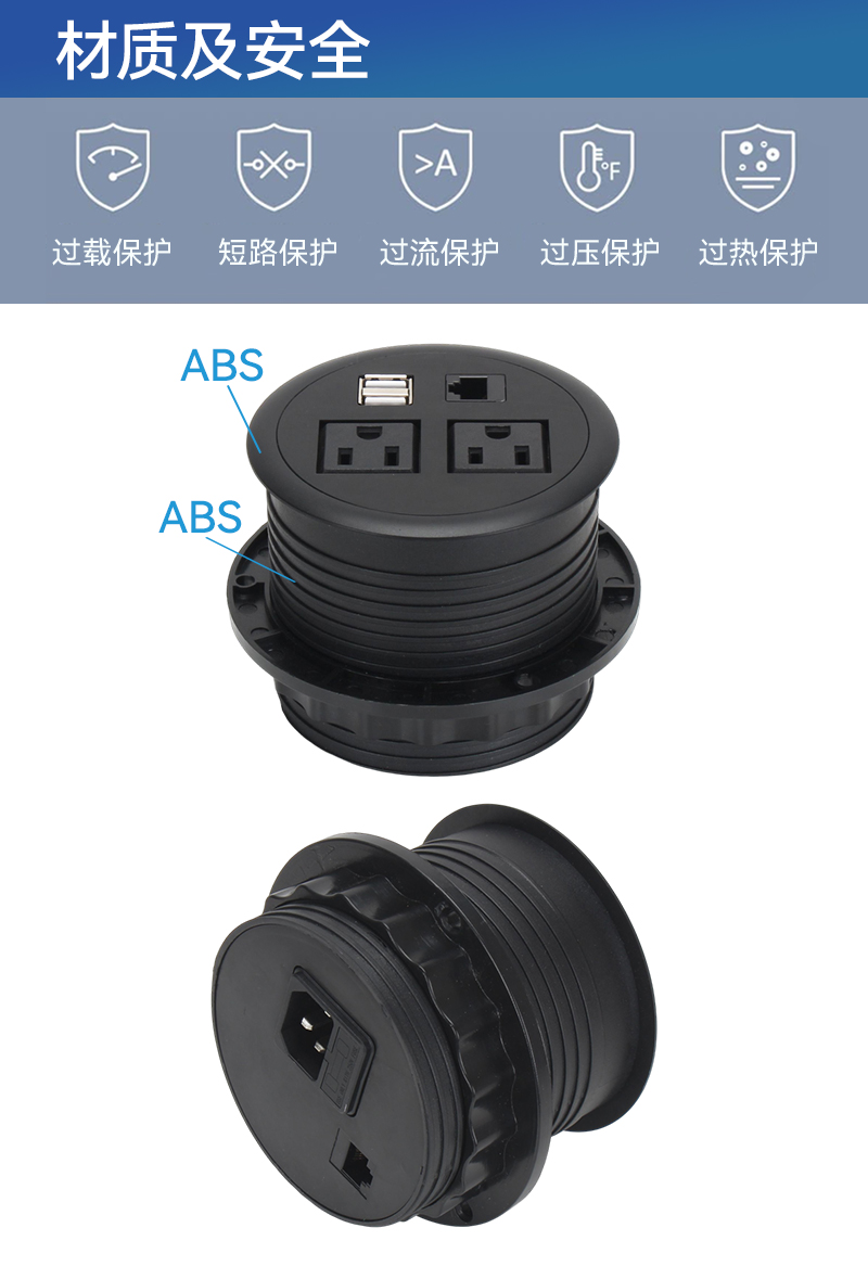 GS233塑料插座,美标2,双A口,网,黑色