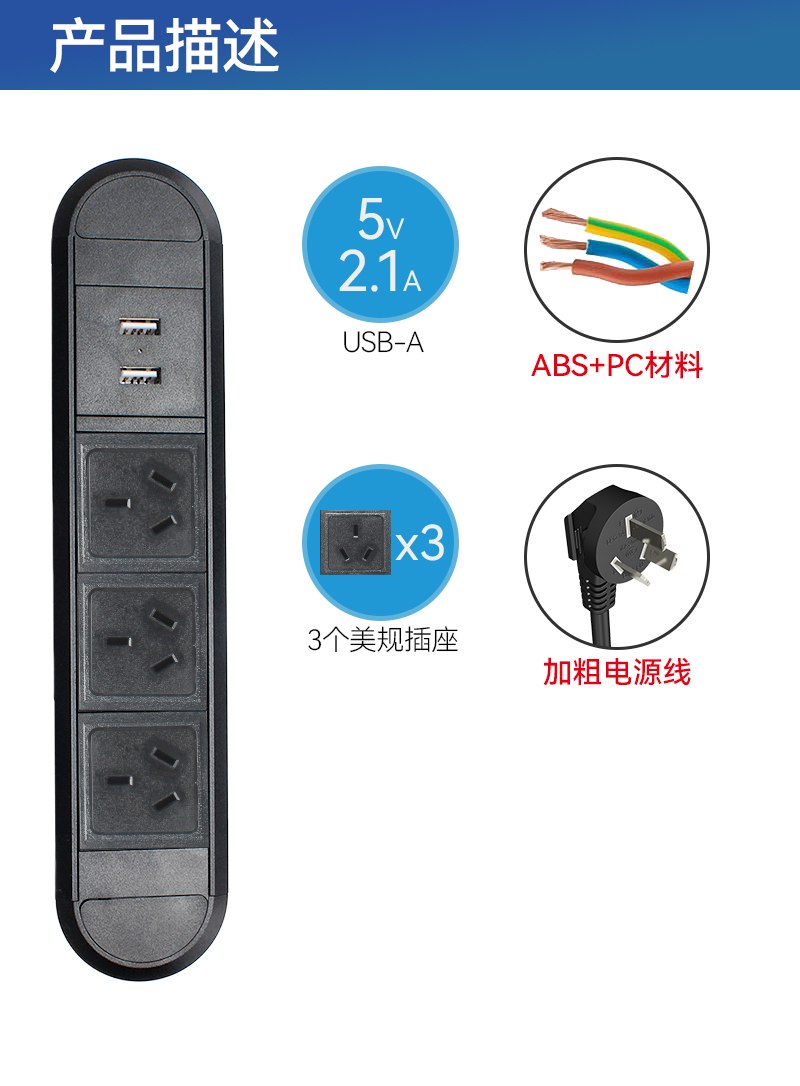 GS233塑料插座,美标2,双USB,开关,黑色