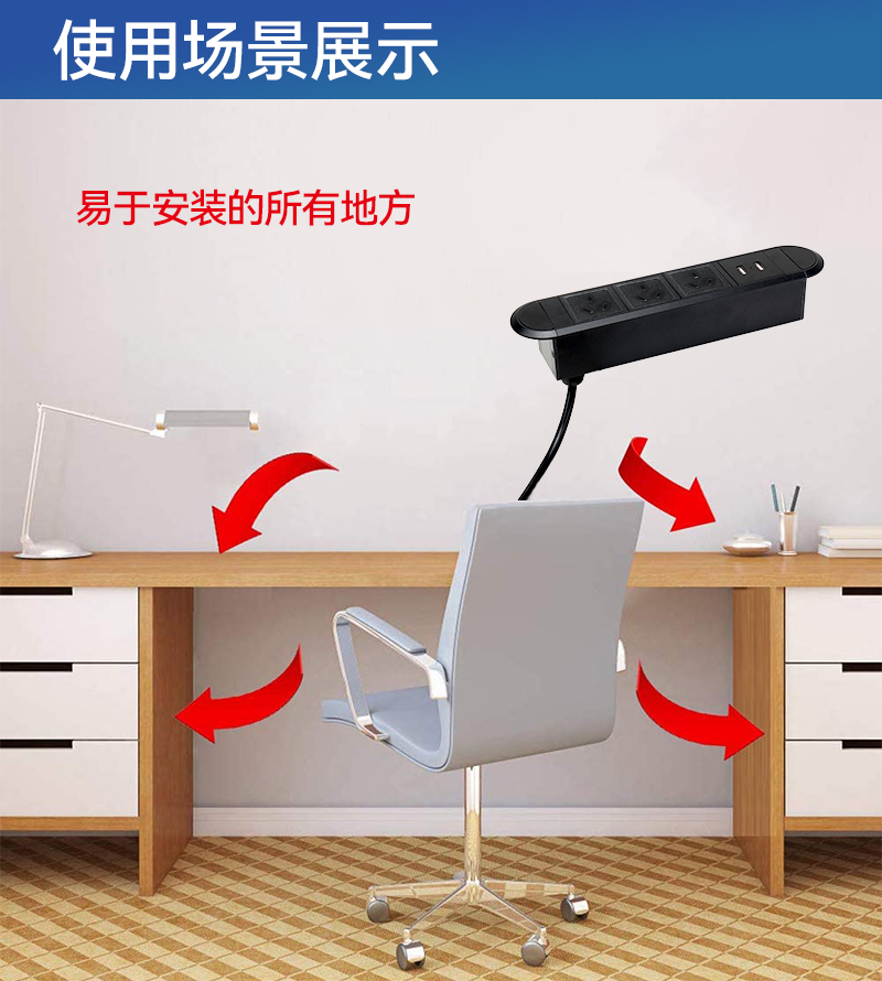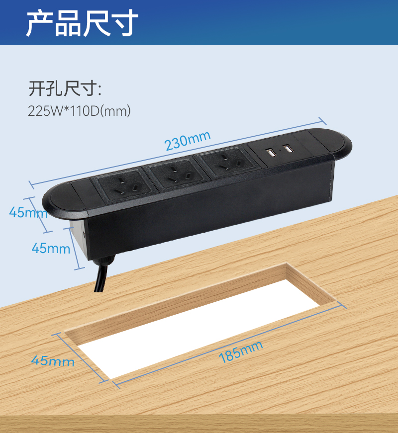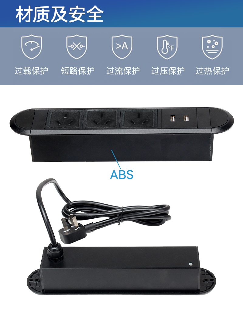GS233塑料排插,澳标3,双USB,黑色-