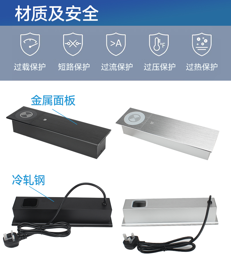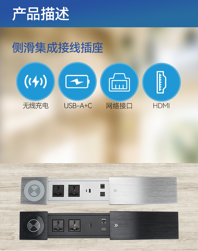 GS255-QI万能2,1A1C,网,HDMI,无线,黑银色,单边侧滑集成接线无线充电插座