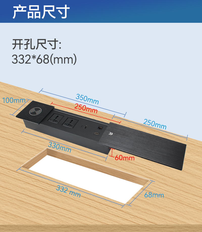 GS301新国标,固,网,麦2,数据4,HDMI,会议桌翻盖多功能插座