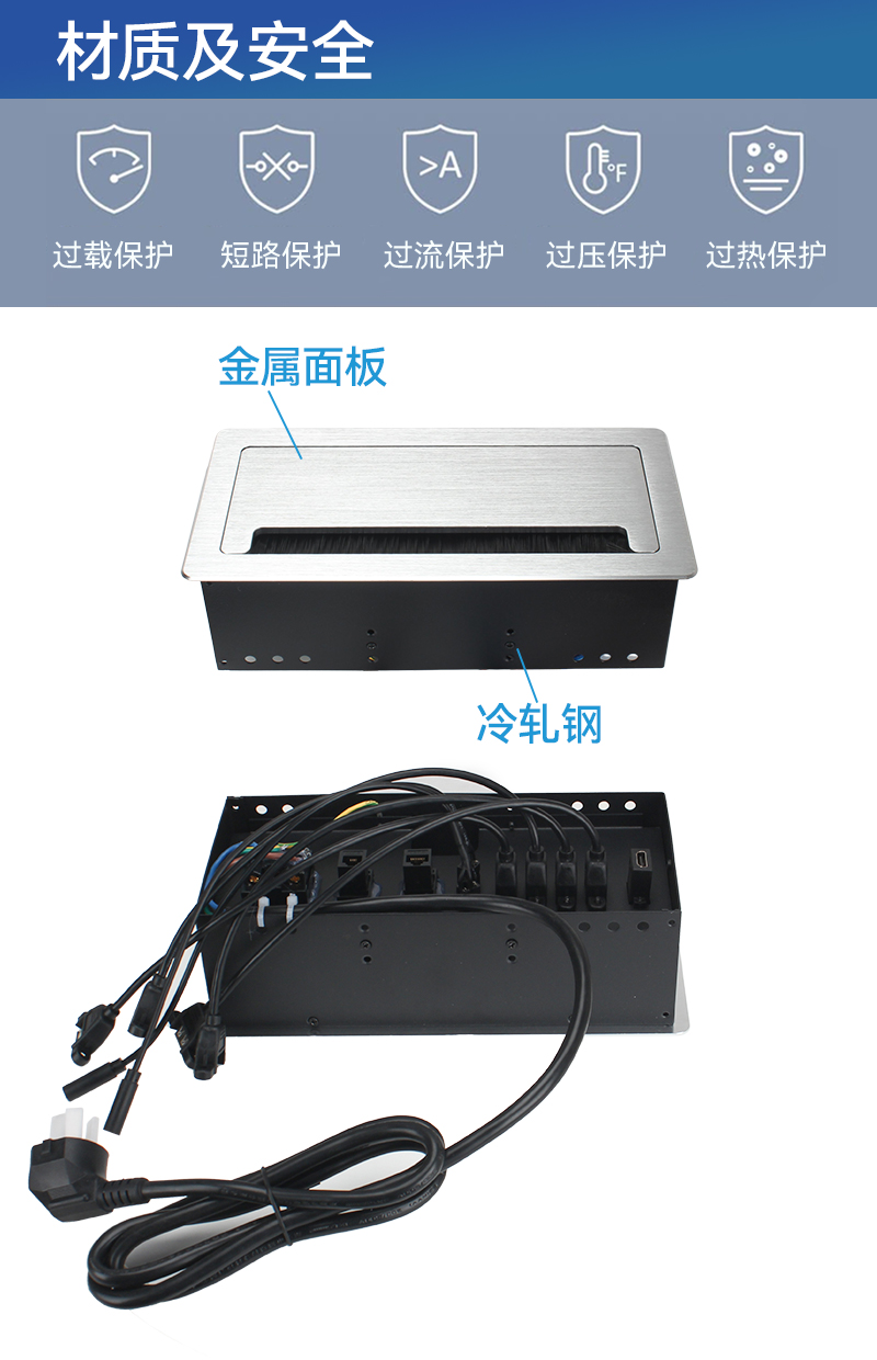 GS900新国标,网4,黑色,快开式气撑桌面插座