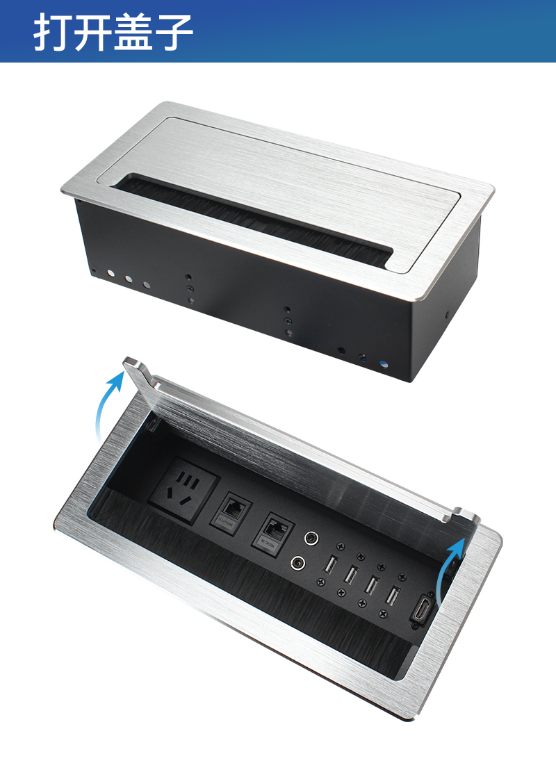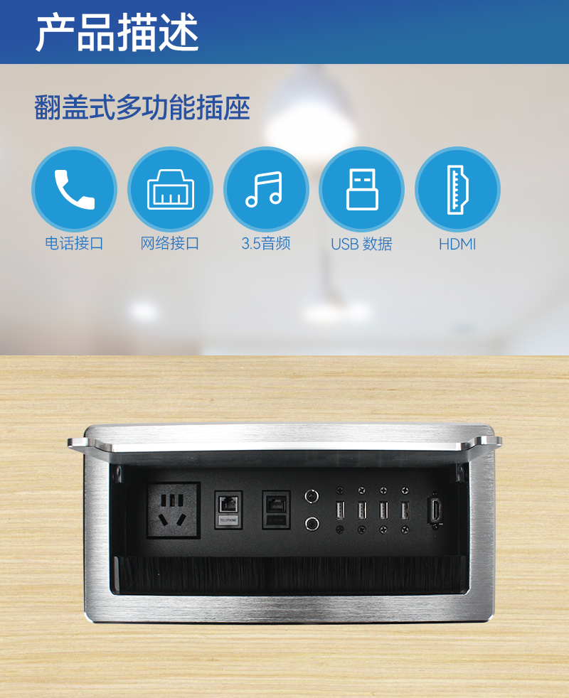 GS301新国标,固,网,麦2,数据4,HDMI,会议桌翻盖多功能插座