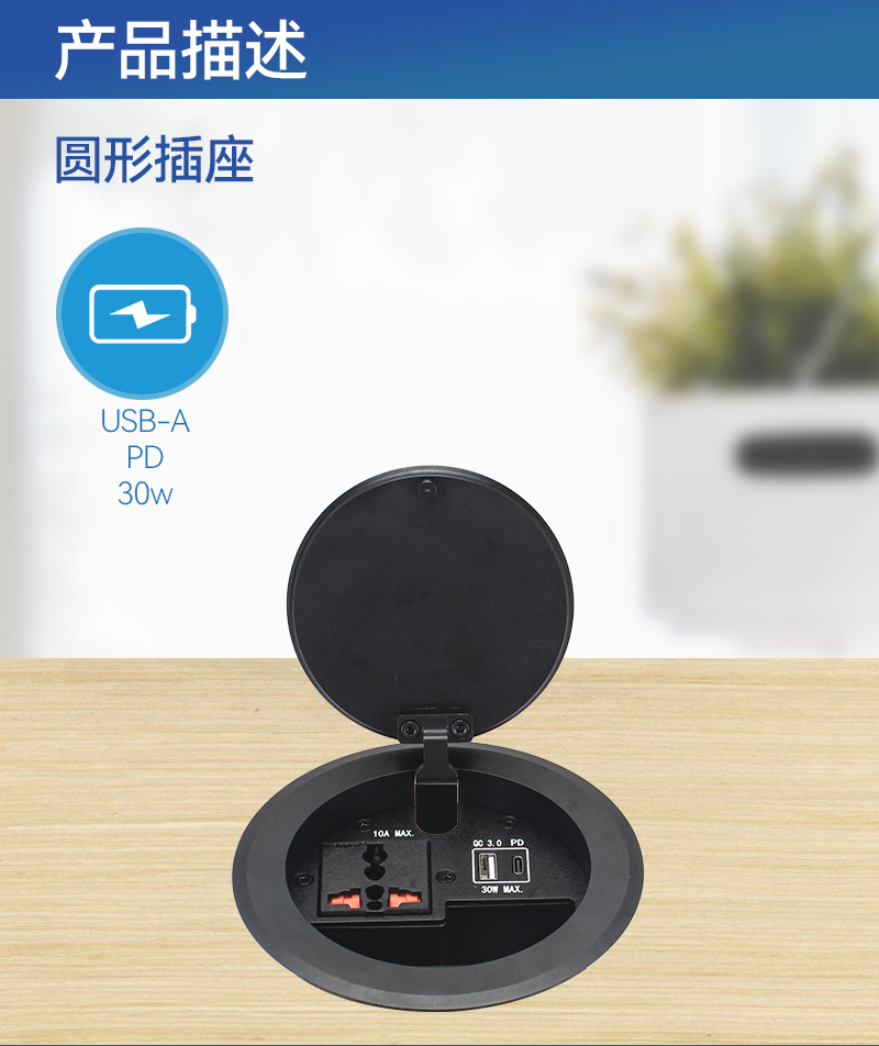 圆形插座,万能,A+C,黑色