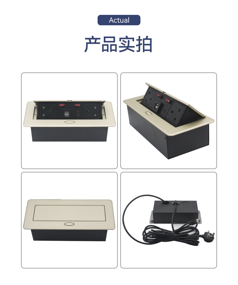 GS301英标2,网2,麦,USB数据,VGA,银色,会议桌翻盖多功能插座带毛刷