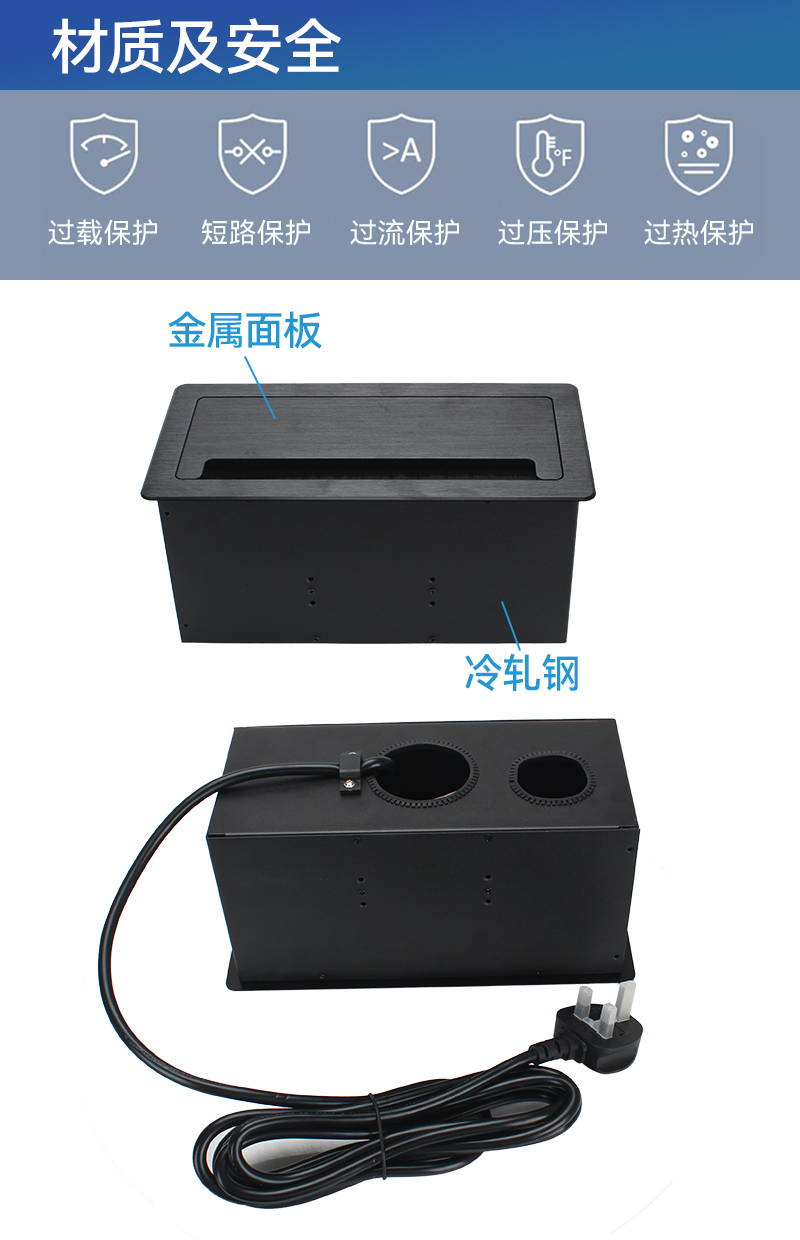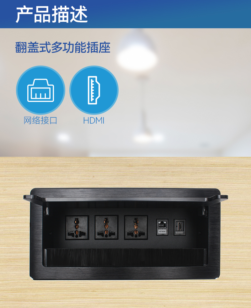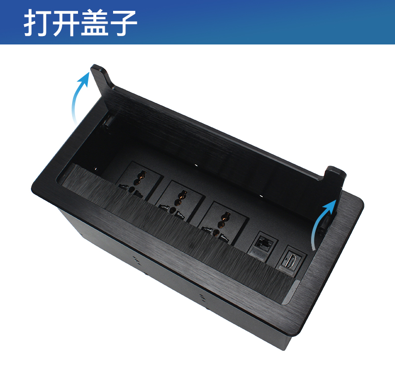 GS301万能3,网,HDMI,黑色,会议桌翻盖多功能插座带毛刷