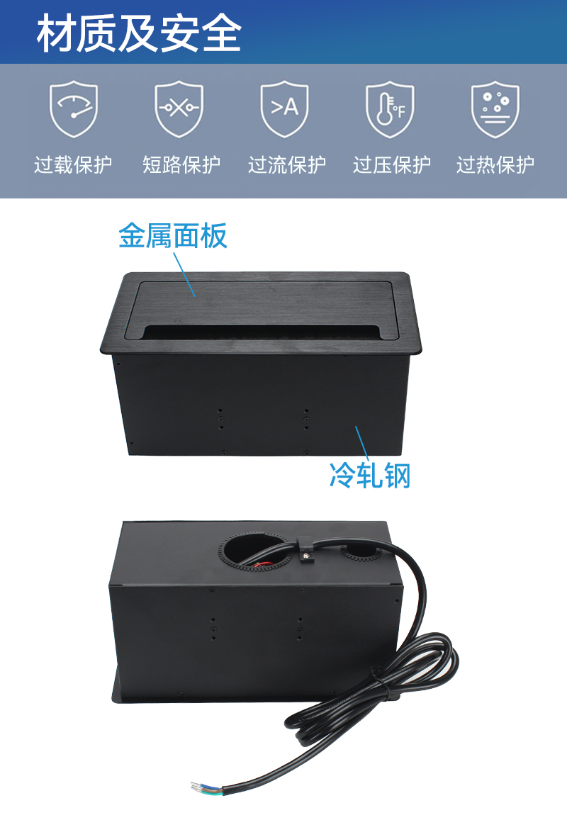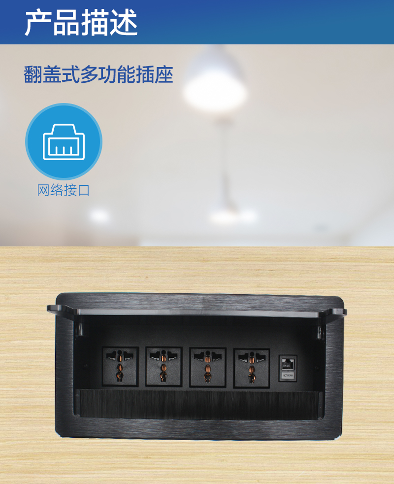 G301万能4,网,黑色,会议桌翻盖多功能插座带毛刷