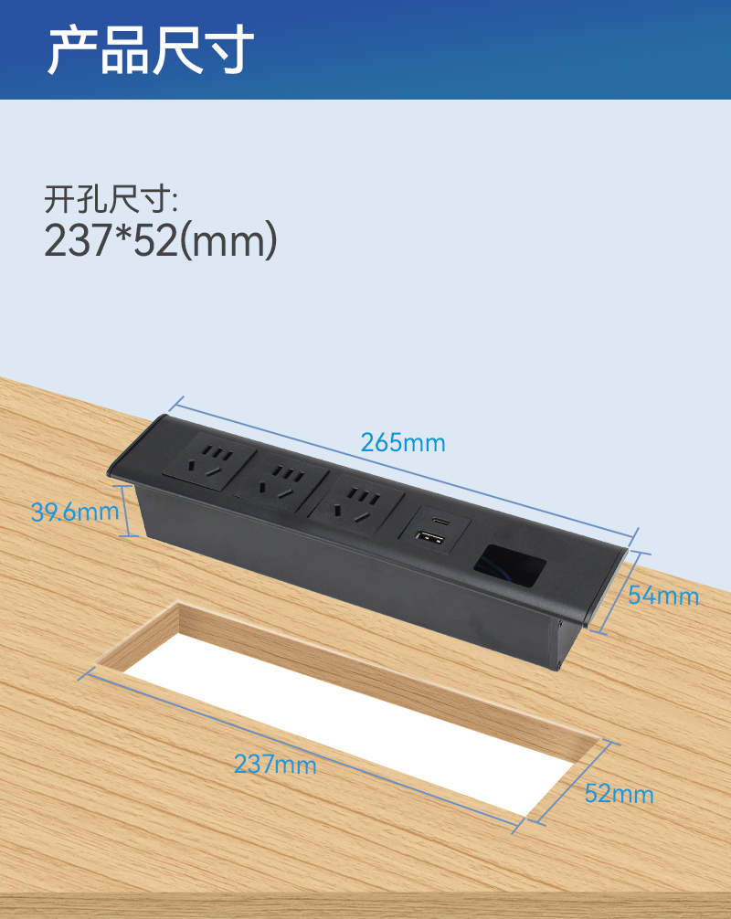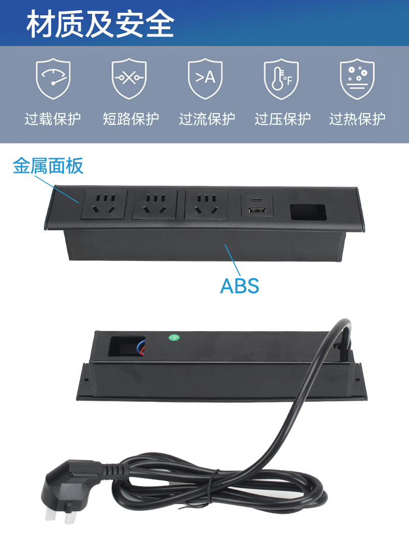 GS225国标3,A+C,过线孔,黑色,带弱电接口多功能集成插座