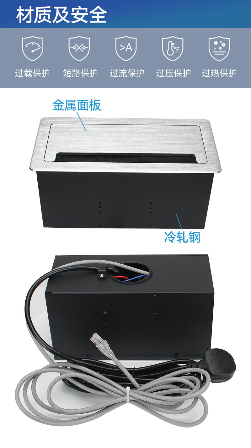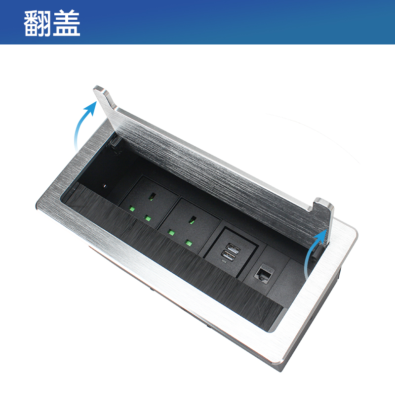 GS301英标2,2A,网,银色-会议桌翻盖多功能插座带毛刷