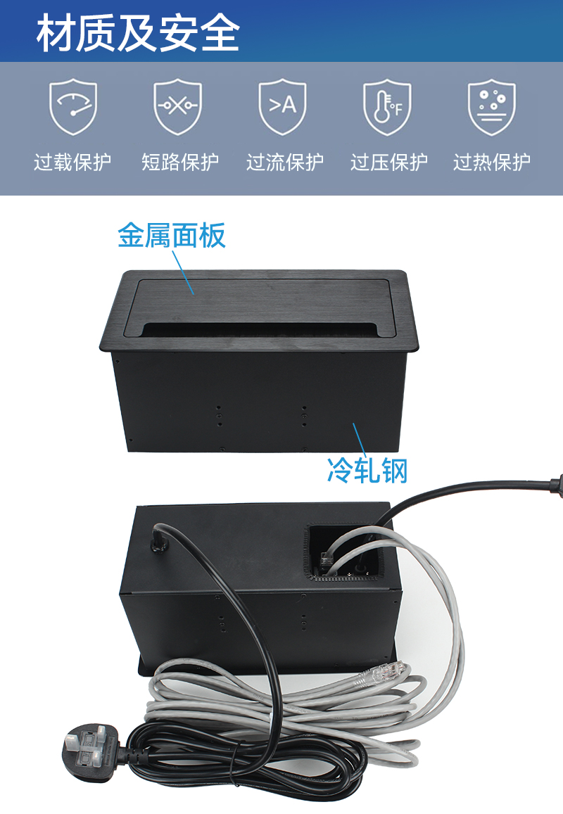 GS301万能2,1A1C,网2,HDMI,黑色-会议桌翻盖多功能插座带毛刷