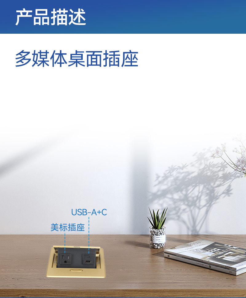 GS206美标,1A1C,金色-多媒体弹起式插座