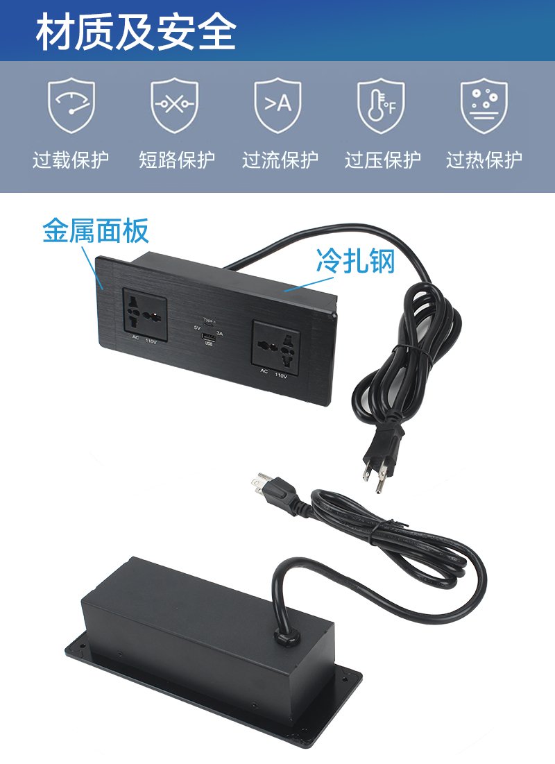 夹桌,法标3,A+C,开关,银色-夹桌插座
