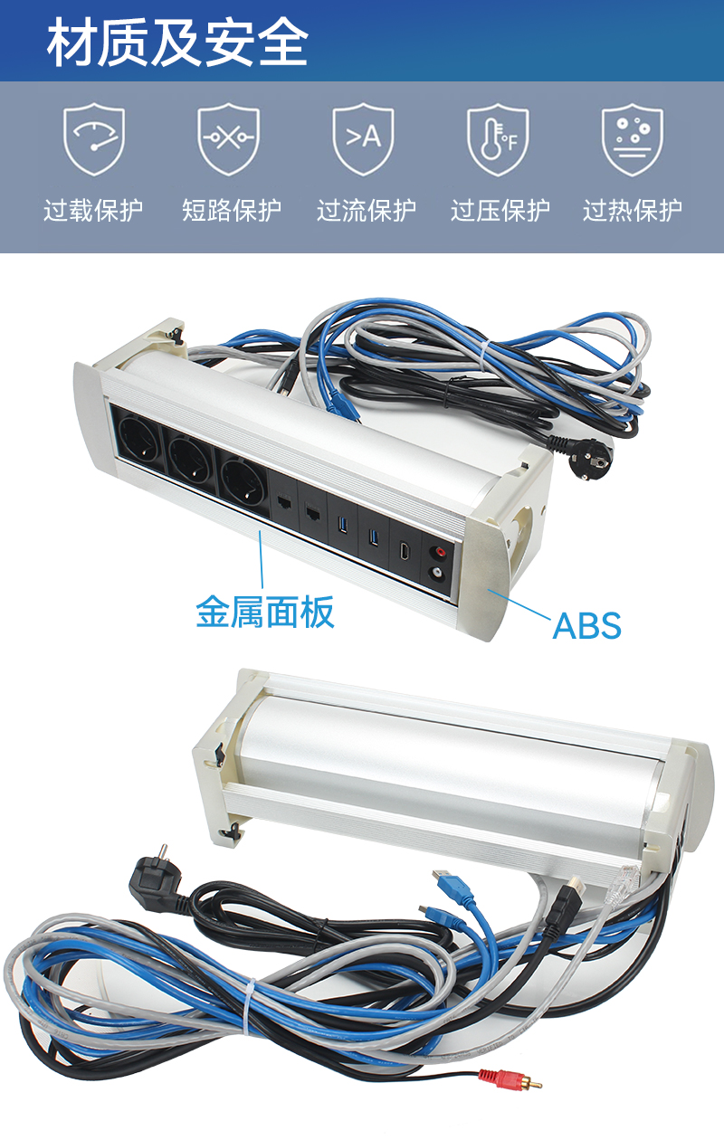 GS501欧标3,网,电,USB数据2,HDMI,音,银色,手动翻转集成插座