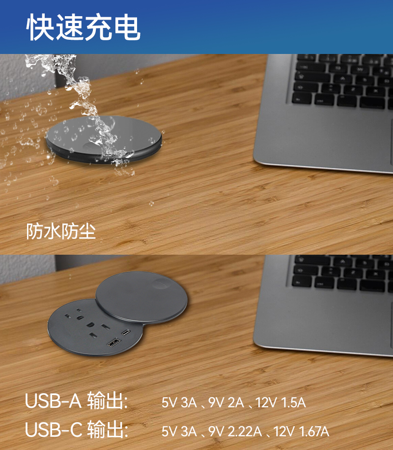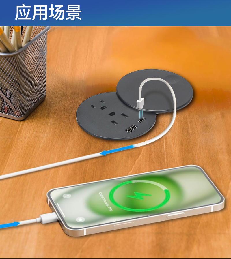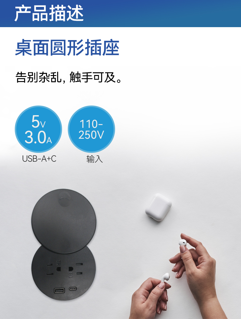 GS812国标,1A1C,无线,白色 圆形桌面插座
