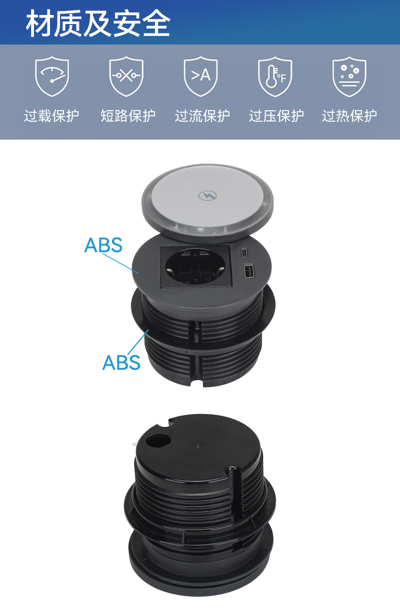 GS261新国标2,1A1C,黑色,65W-无线充电嵌入式插座
