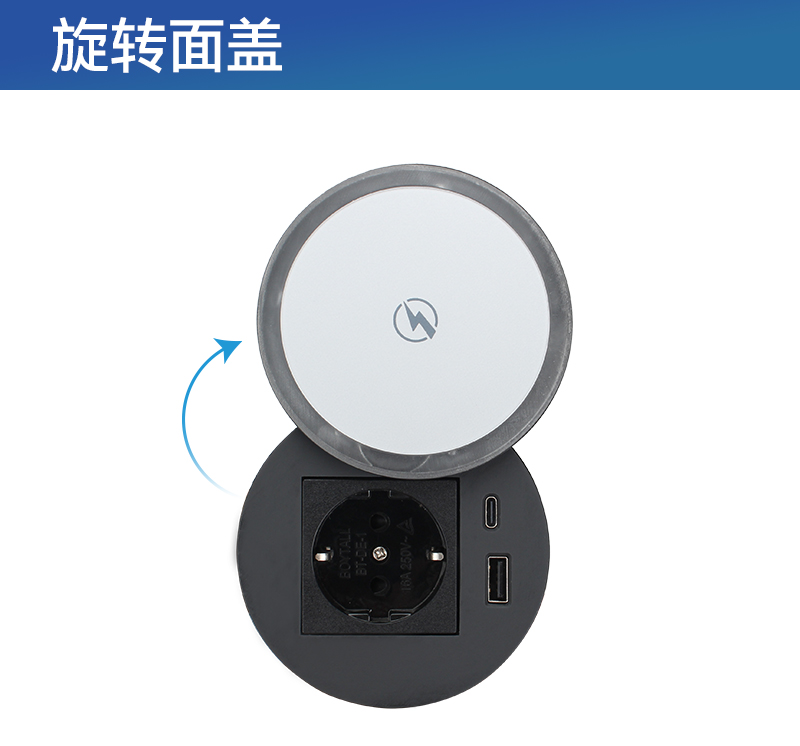 GS812欧标,1A1C,无线,黑色-圆形无线充电插座